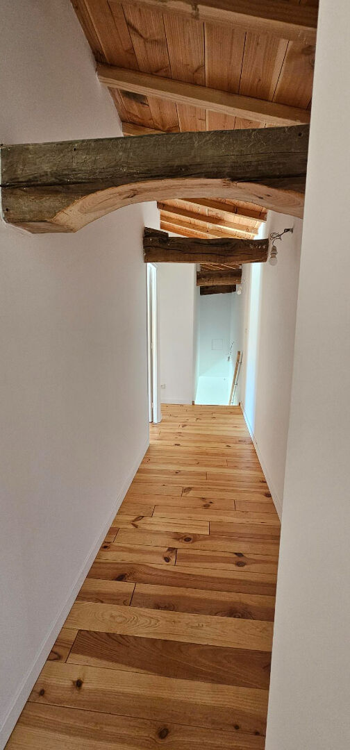 A l'étage, 3 chambres spacieuses avec poutres apparentes, 1 salle d'eau et wc.