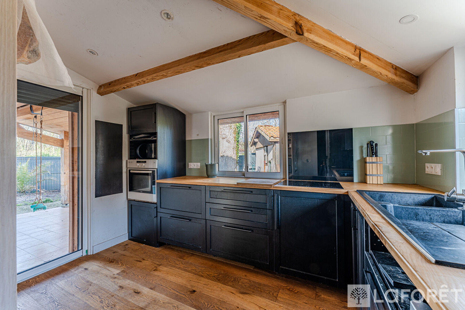 Le poêle à bois structure l'espace de vie et apporte une dimension cosy très appréciable. Le séjour s'ouvre naturellement sur un espace salon cocooning ainsi que sur une cuisine aménagée et équipée, au style intemporel, fonctionnelle et lumineuse.