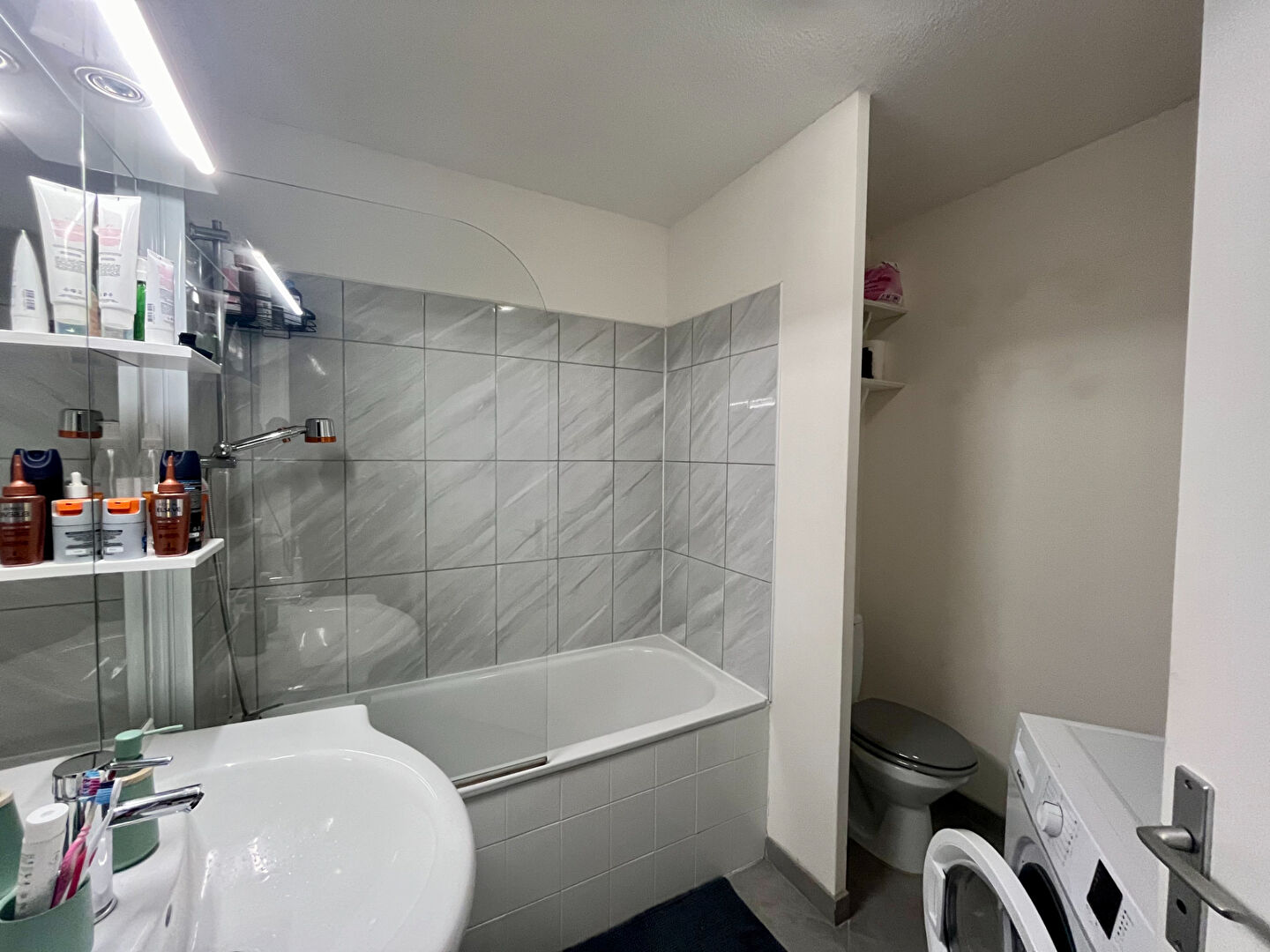 L'appartement se compose d'une cuisine ouverte sur le séjour, d'un balcon couvert, d'une chambre avec placard et d'une salle de bain avec WC. Une place de parking est également incluse.