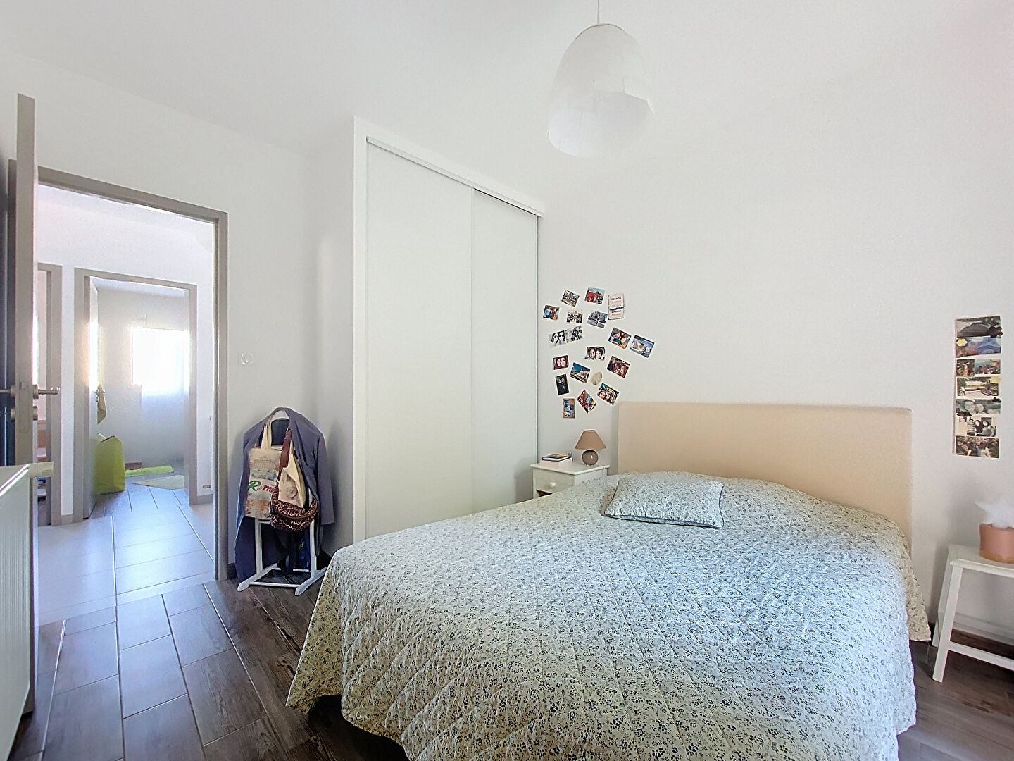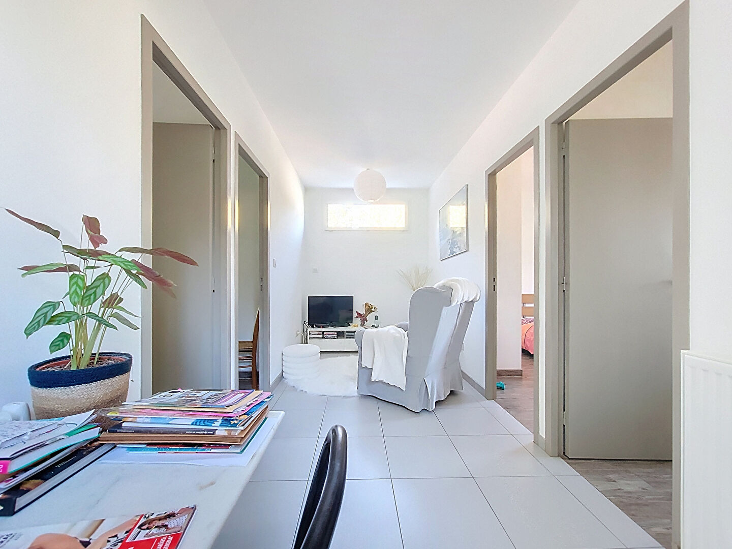 Elle se compose au rez-de-chaussée, d'une grande pièce de vie lumineuse avec cuisine ouverte, un cellier, deux chambres, un wc et une salle d'eau.
