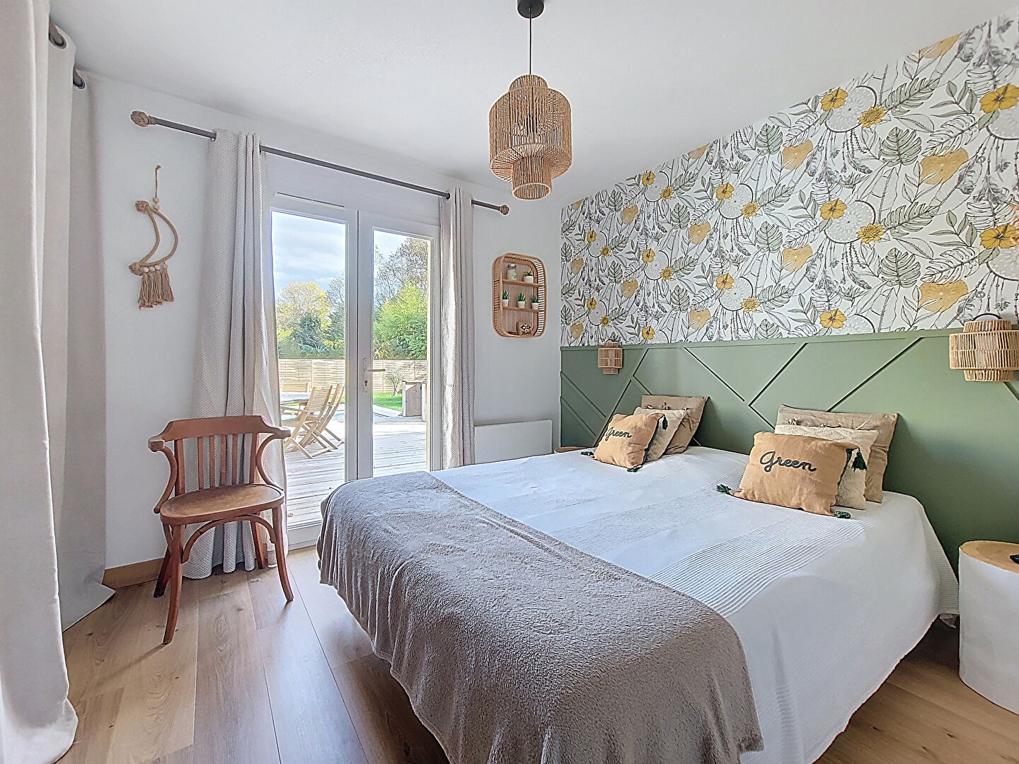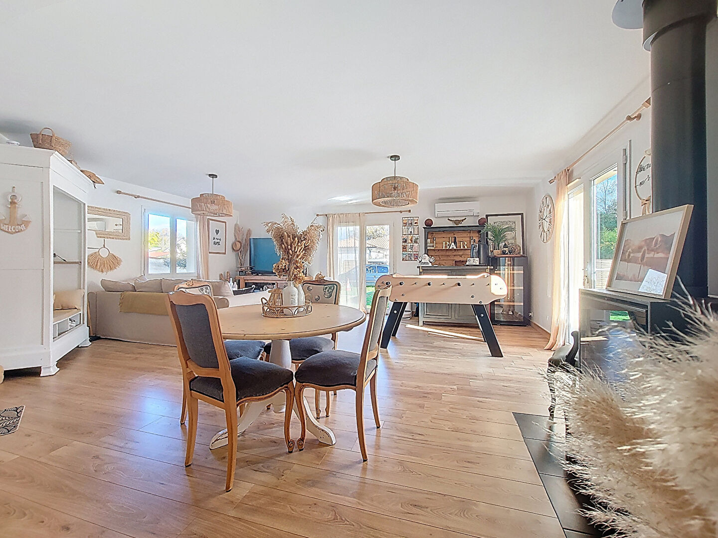 Vous serez séduits par sa pièce de vie lumineuse, climatisée et agrémentée d'un poêle à bois, profitant d'une triple exposition et d'un accès direct à la terrasse bois et à la piscine. La cuisine semi-ouverte, aménagée et équipée, est prolongée par un cellier puis un garage attenant.