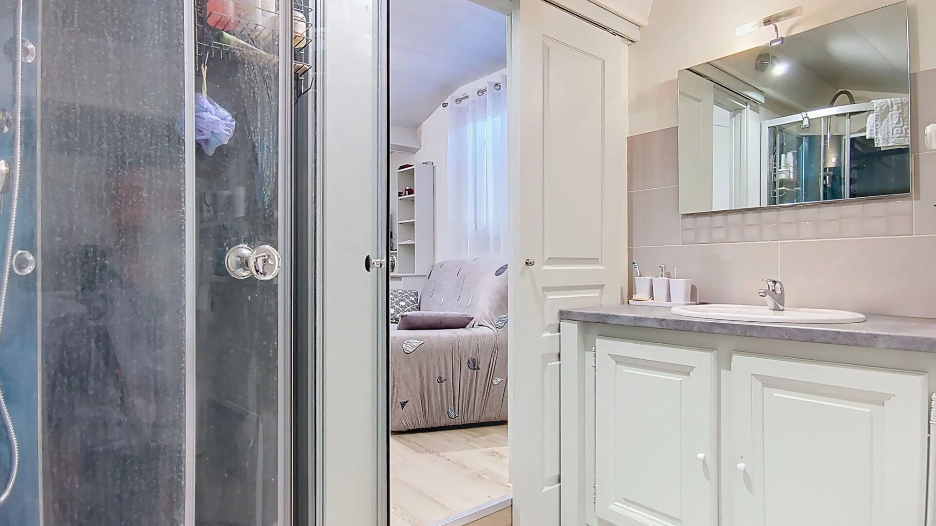 À l'étage, une chambre dispose de sa propre salle d'eau avec WC