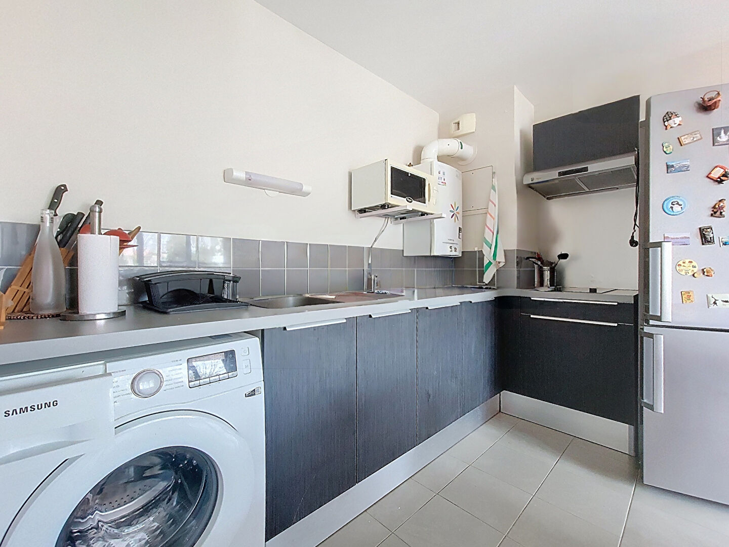 Il se compose d'une entrée avec placard, d'une cuisine aménagée et semi-équipée ouverte sur le séjour donnant sur un balcon exposé ouest et d'une chambre ainsi qu'une salle d'eau avec wc.