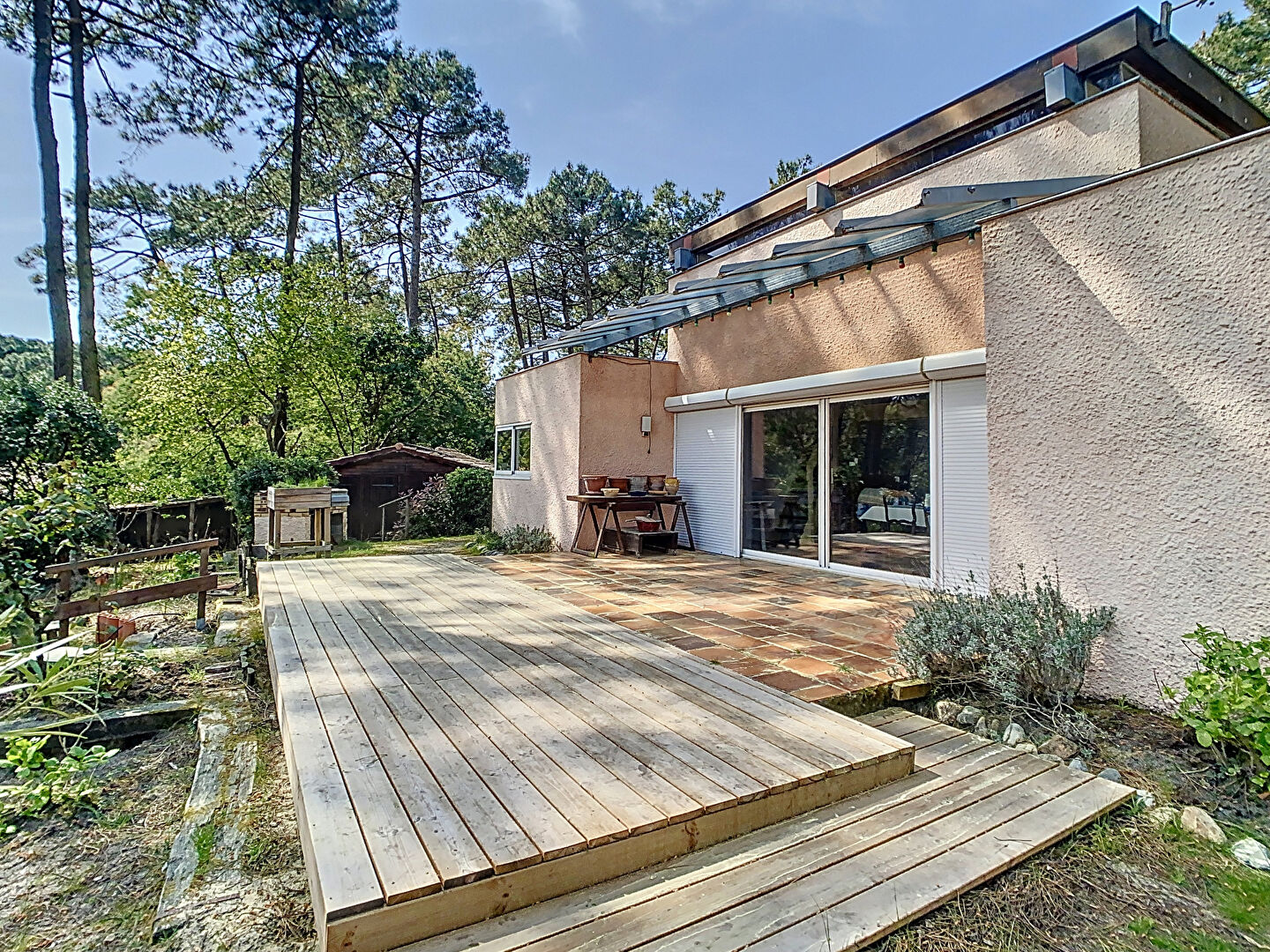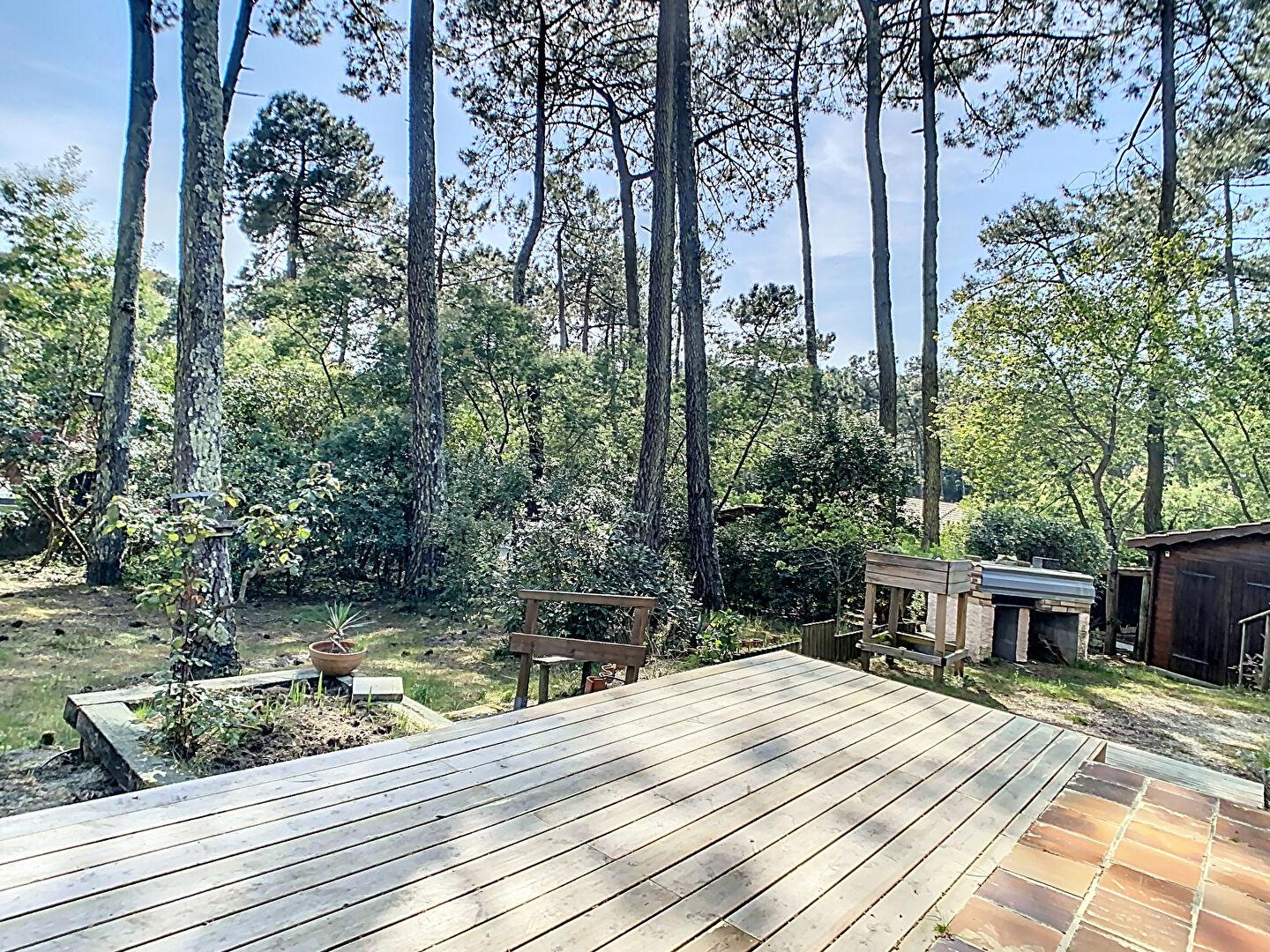 Le terrain de 1140 m2, arboré , invite à la détente dans un environnement typiquement ferretcapien.