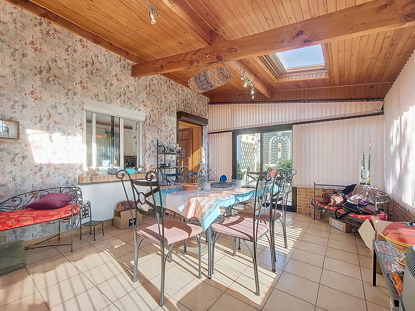 La véranda de 19 m² ouvre sur un jardin agréable et verdoyant, où se trouve également un cabanon de jardin pratique pour le rangement et un carport pour stationner votre véhicule à l'abri.