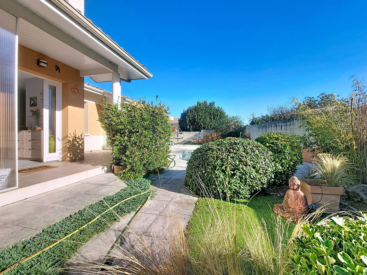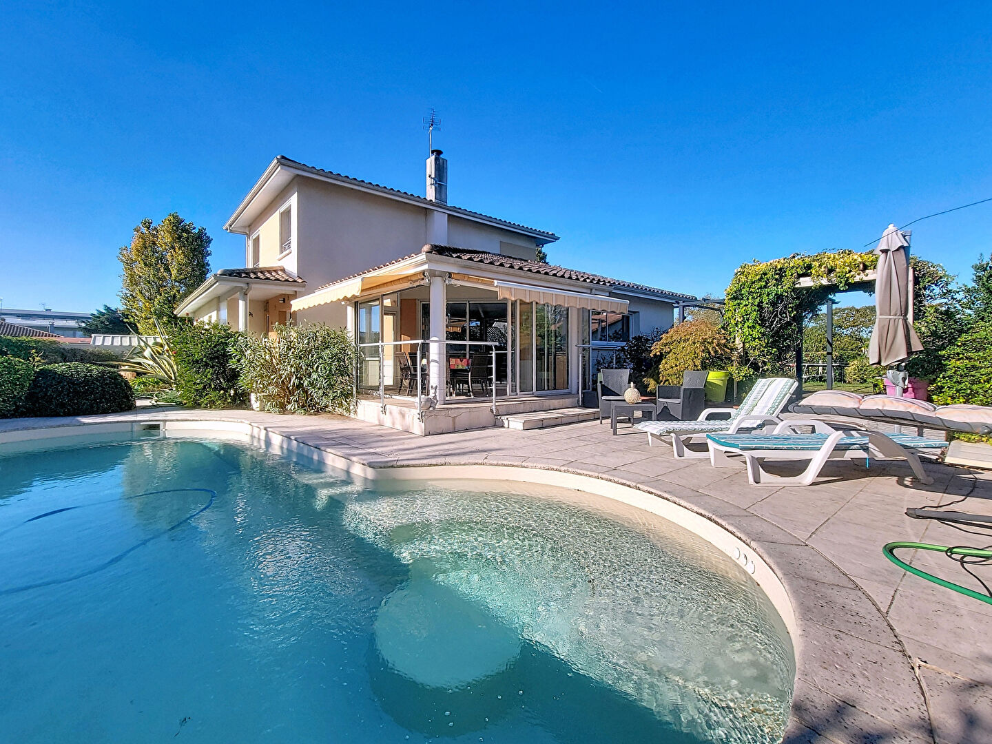 Vous pourrez également profiter d'une belle véranda, conviviale, donnant sur une grande piscine, véritable invitation au calme, à la détente et aux soirées festives, et le tout sans vis-à-vis.
