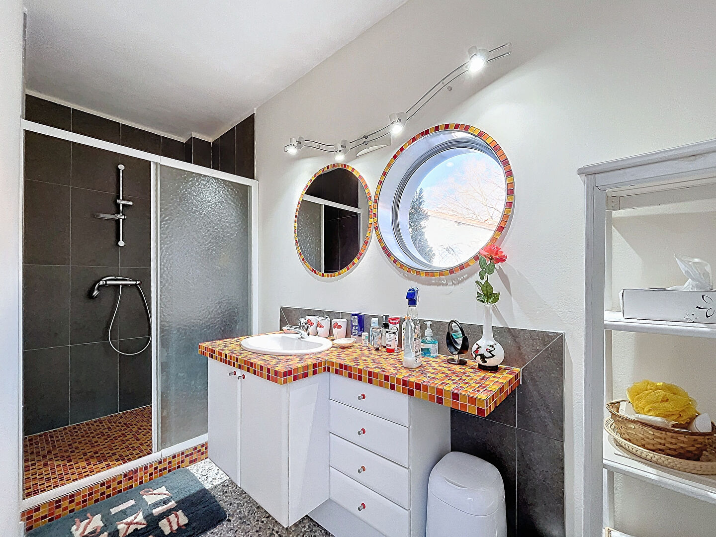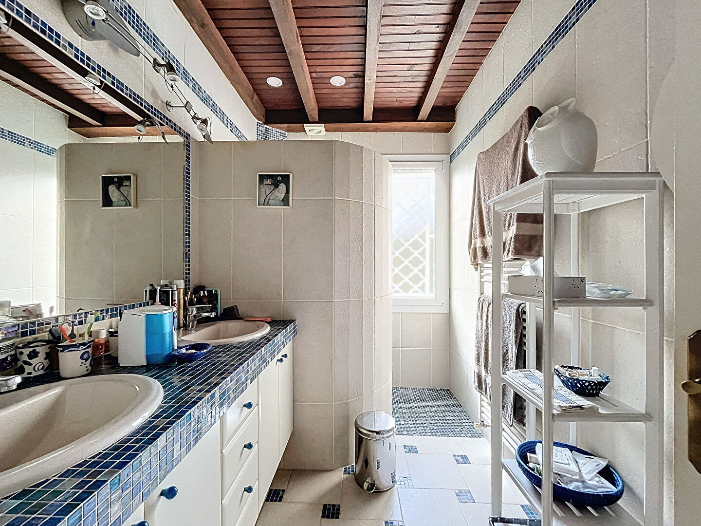 Cette maison d'architecte est composée comme suit: une entrée, un salon séjour, une cuisine tout aménagée et équipée, cinq chambres dont une suite parentale avec baignoire et WC, un W.C séparé avec son lave mains, une salle d'eau, un cellier et une buanderie.