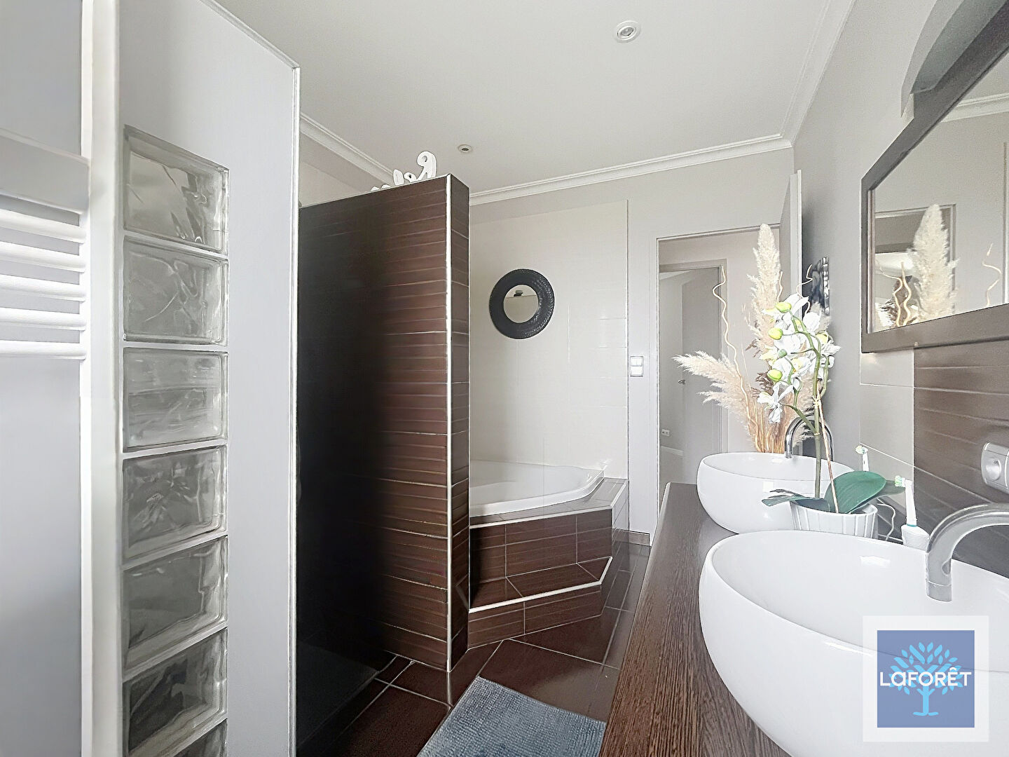 Vous disposerez également d'une salle de bain équipée à la fois d'une baignoire et d'une douche, offrant confort et praticité au quotidien. Un W.C séparé et une buanderie complète l'intérieur de ce bien.