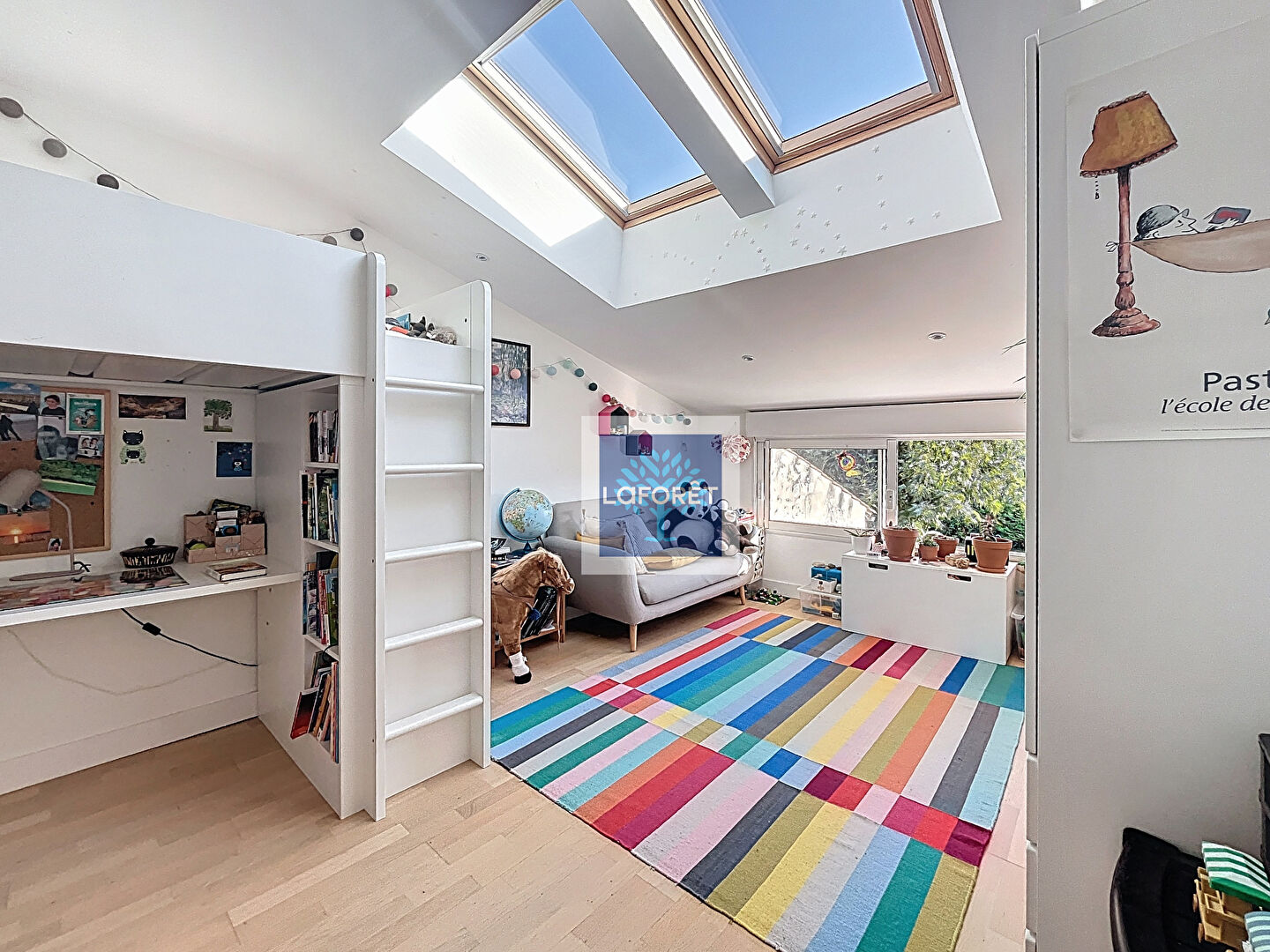 À l'étage, l'espace nuit se compose de trois chambres, un bureau, un dressing ainsi qu'une seconde salle de bains, vous garantissant tout le confort nécessaire pour une vie de famille sereine.