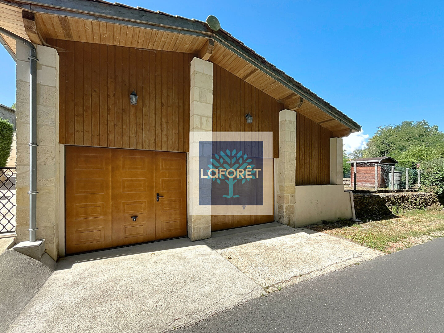Coté jardin, le bien est doté d'un double garage, un atelier et un grenier de stockage ainsi qu'un dépendance pouvant faire office de salle de jeux, salle de musique ou musculation.