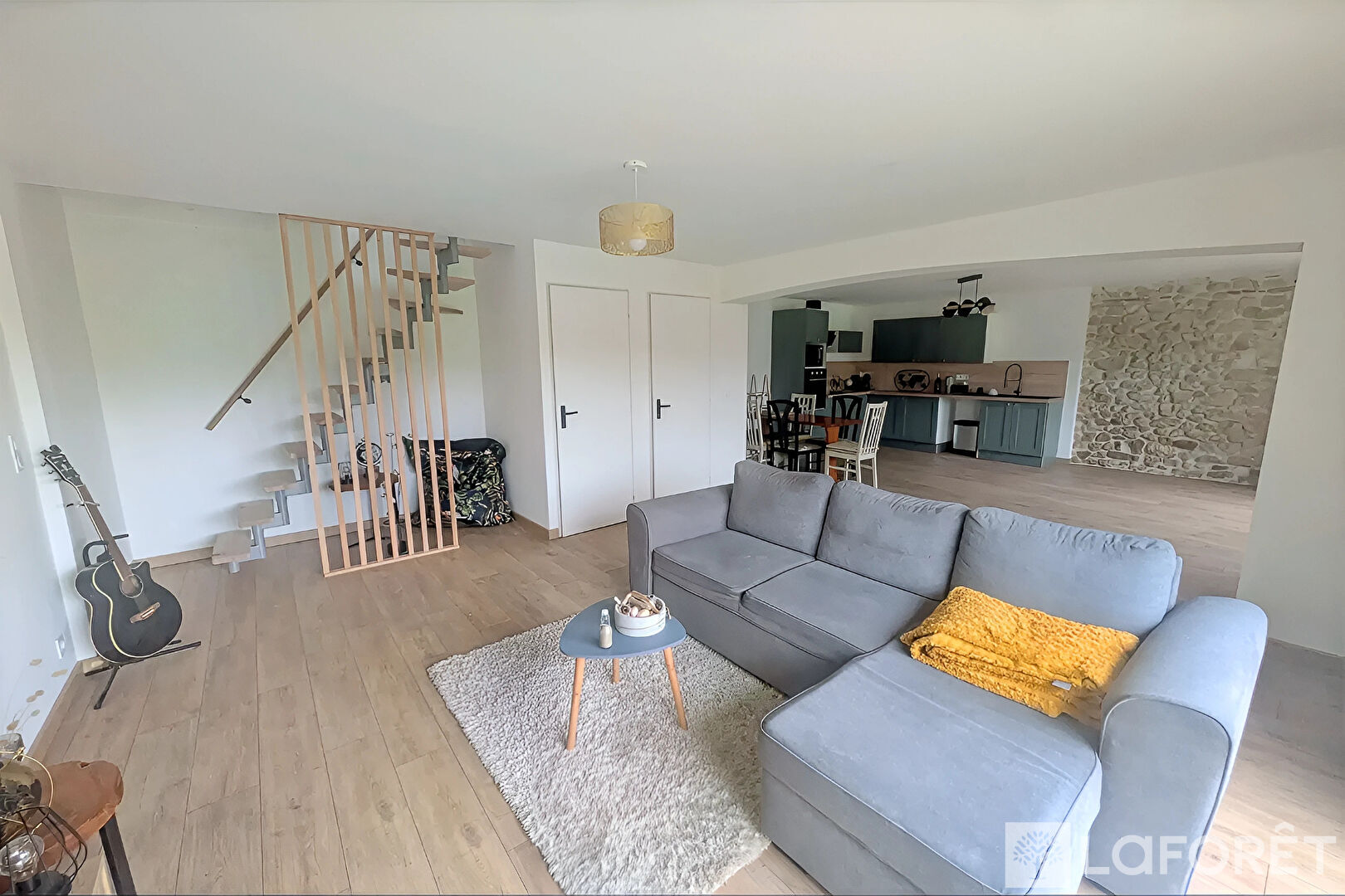 Au rez-de-chaussée, vous découvrirez une belle pièce de vie lumineuse avec cuisine ouverte aménagée et équipée, donnant directement sur le jardin. Un cellier ainsi qu'un WC indépendant complètent ce niveau.