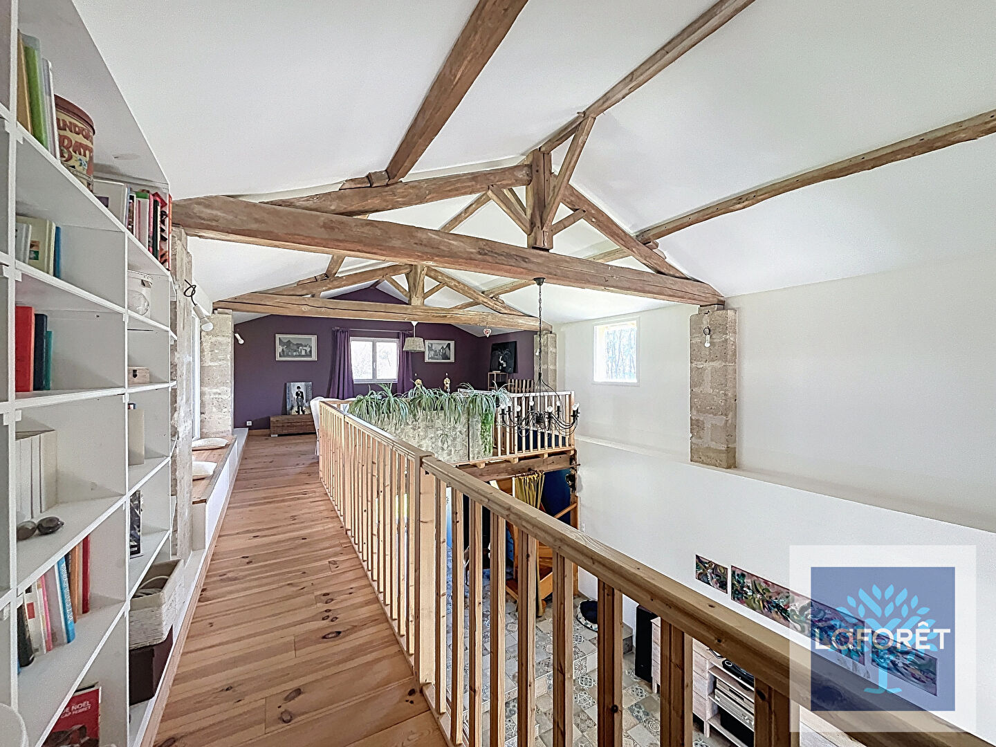 Dès l'entrée, vous découvrirez un vaste salon-séjour baigné de lumière, ouvert sur une superbe mezzanine, créant une atmosphère chaleureuse et conviviale.