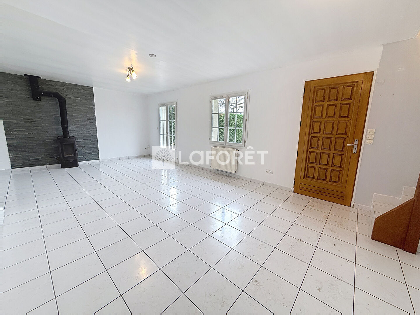 Elle se compose d'une entrée donnant sur un vaste salon-séjour de 40 m², lumineux et convivial, agrémenté d'un poêle à bois.