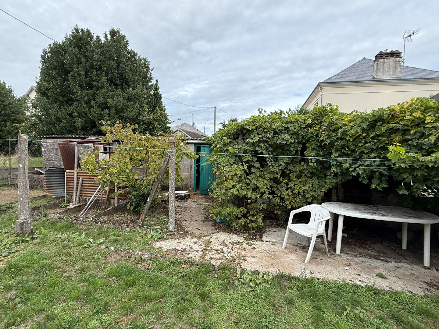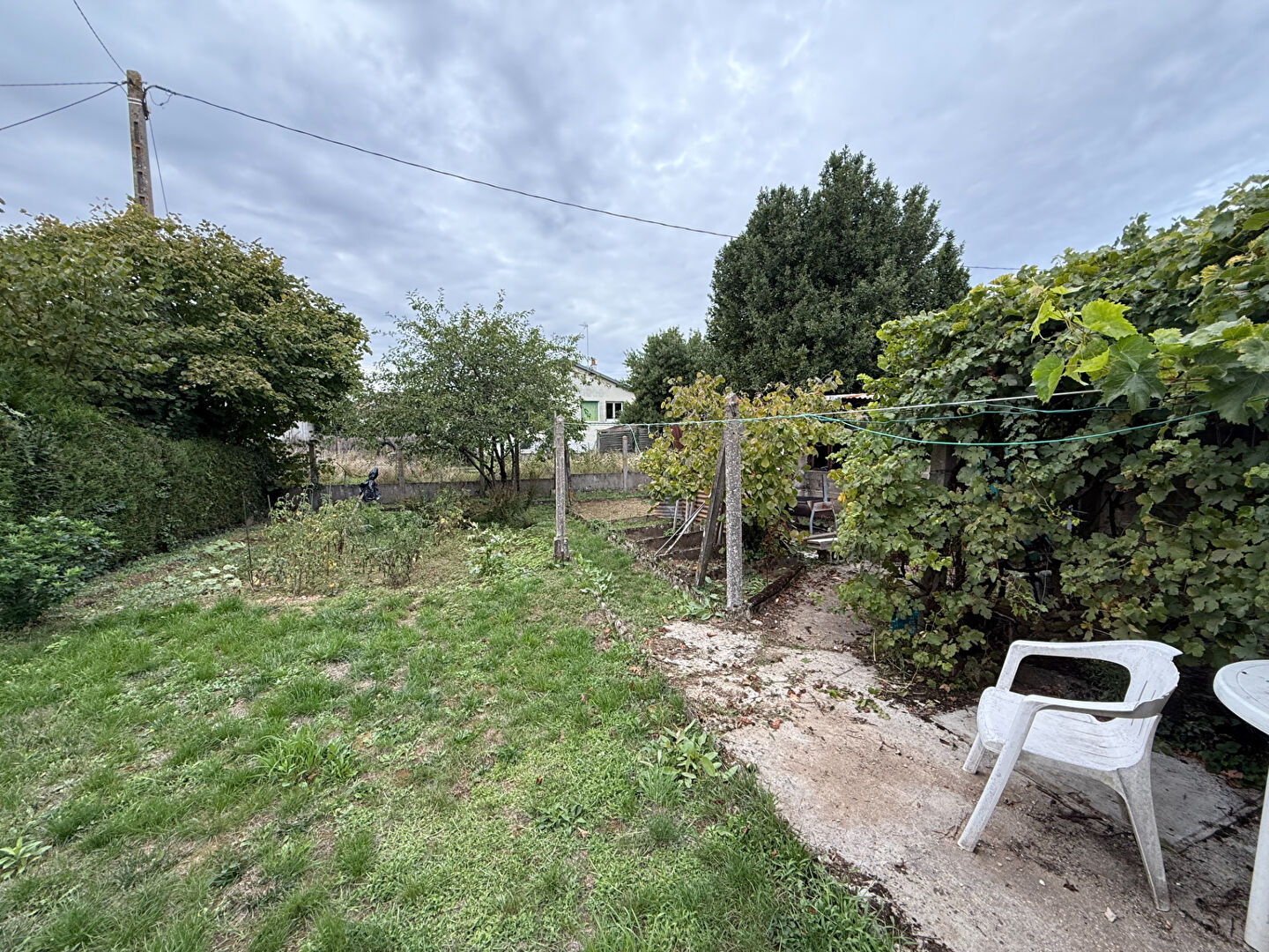 Le terrain entièrement clos accueille un espace détente, une vigne et un barbecue en dur. L'abri de jardin offre un véritable potentiel pour les bricoleurs ou pour stocker le matériel de jardinage.
