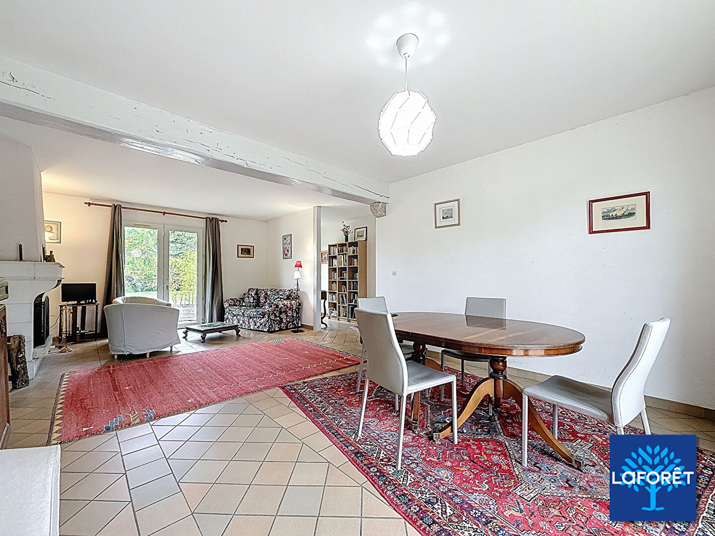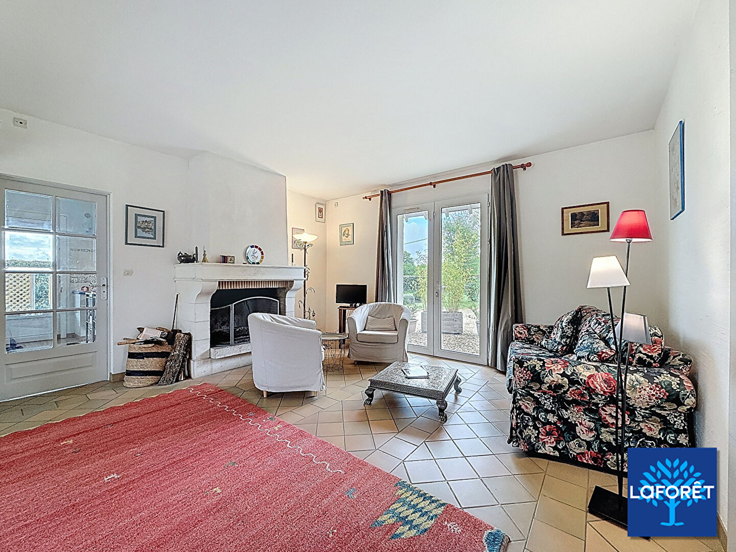Belle pièce de vie avec cheminée