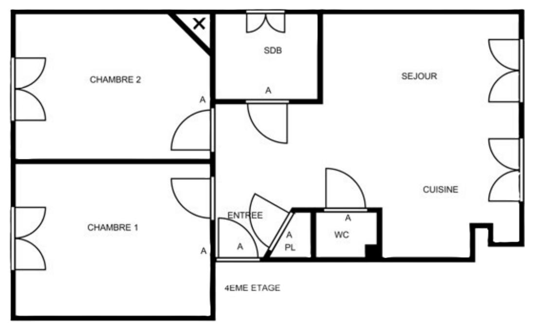 57 m² • 3 pièces • 2 chambres