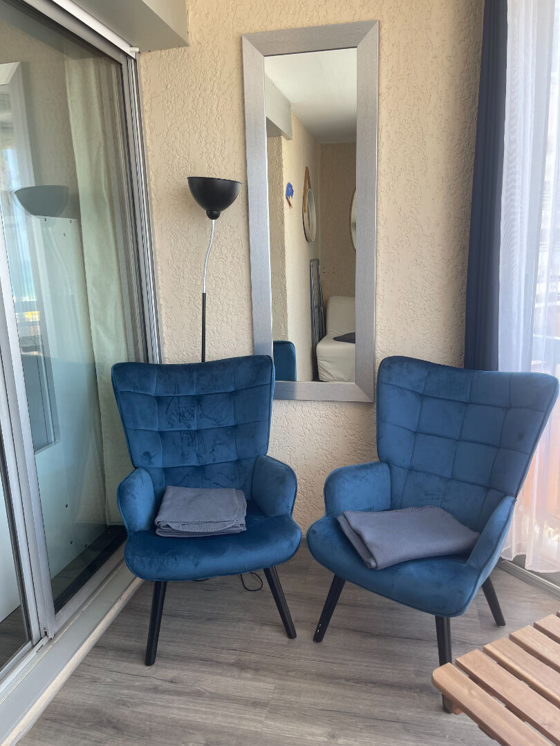Au 5 ème étage avec ascenseur dans une belle copropriété sécurisée en front de mer , nous vous proposons cet appartement de type T1 très joliment et fonctionnellement meublé.