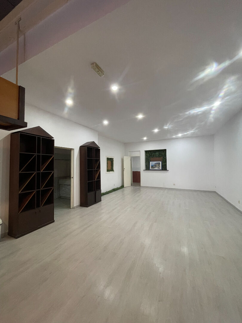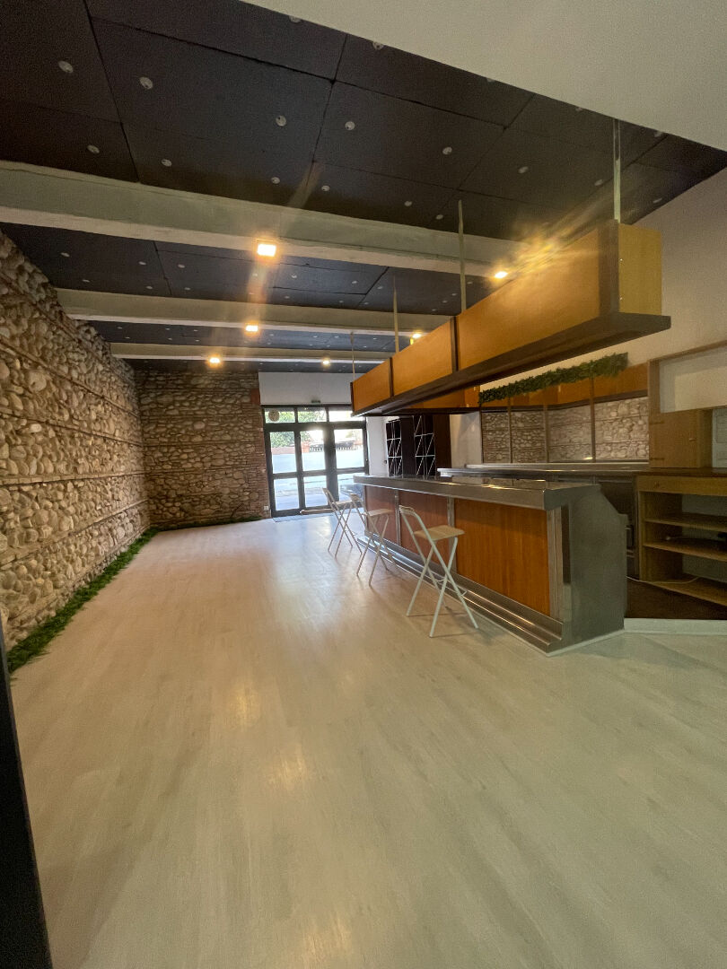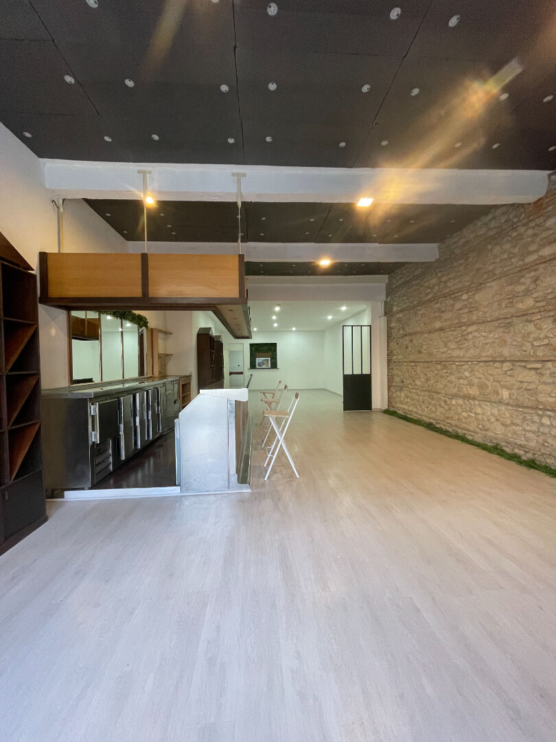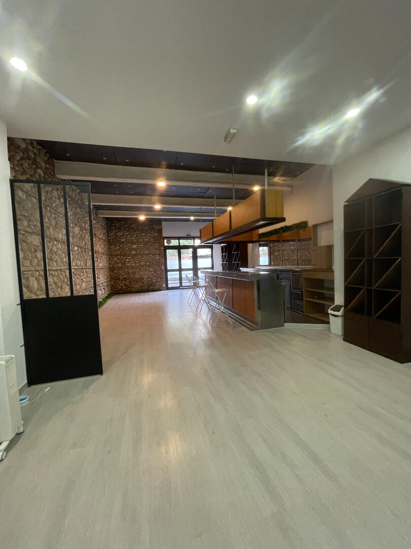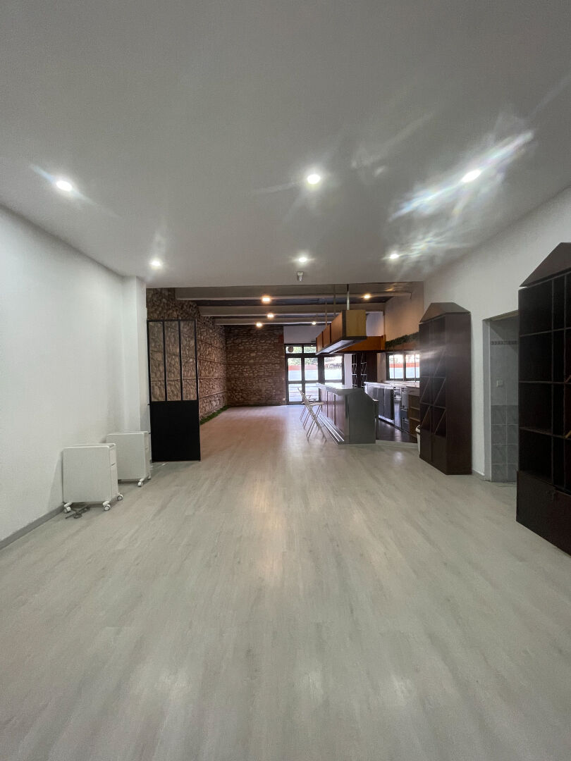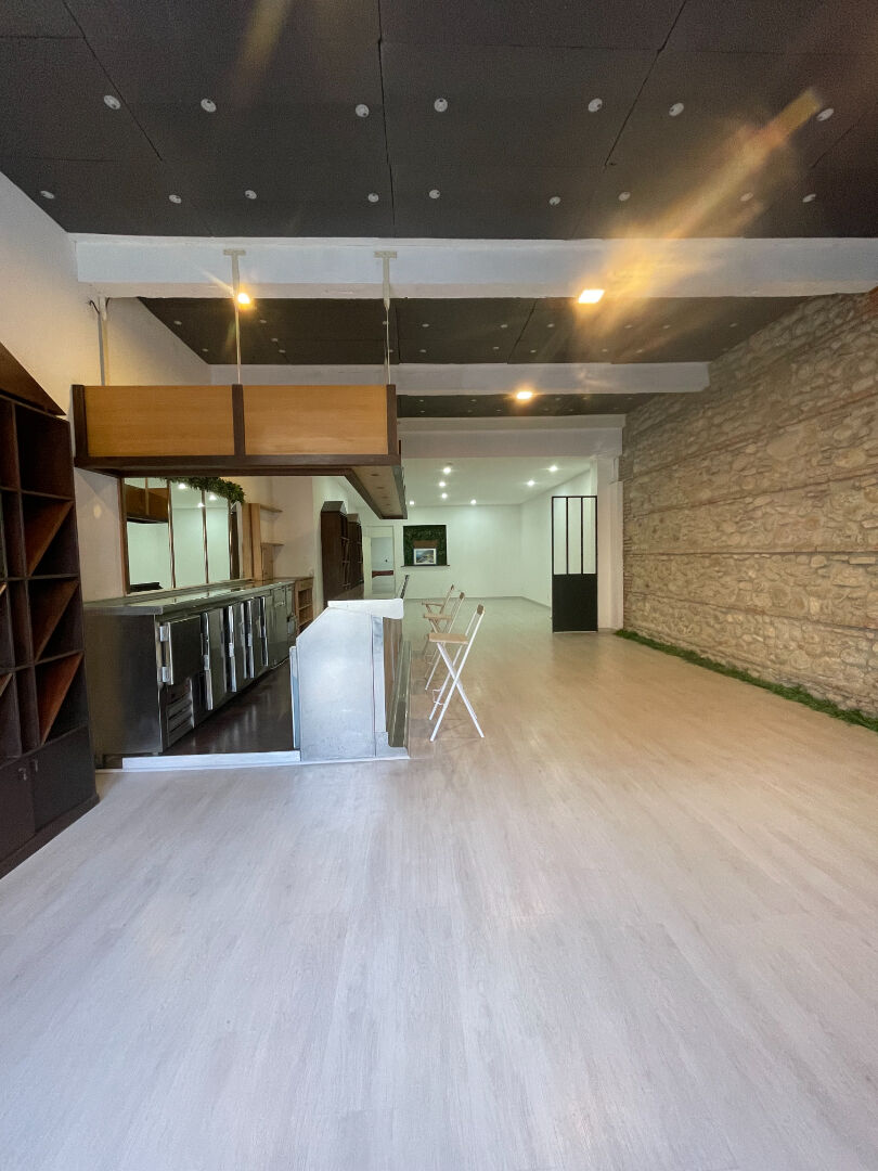 Local commercial de 130m2 en parfait état avec une grande pièce avec vitrine et mur en pierre , wc , pièce annexe sur l'arrière