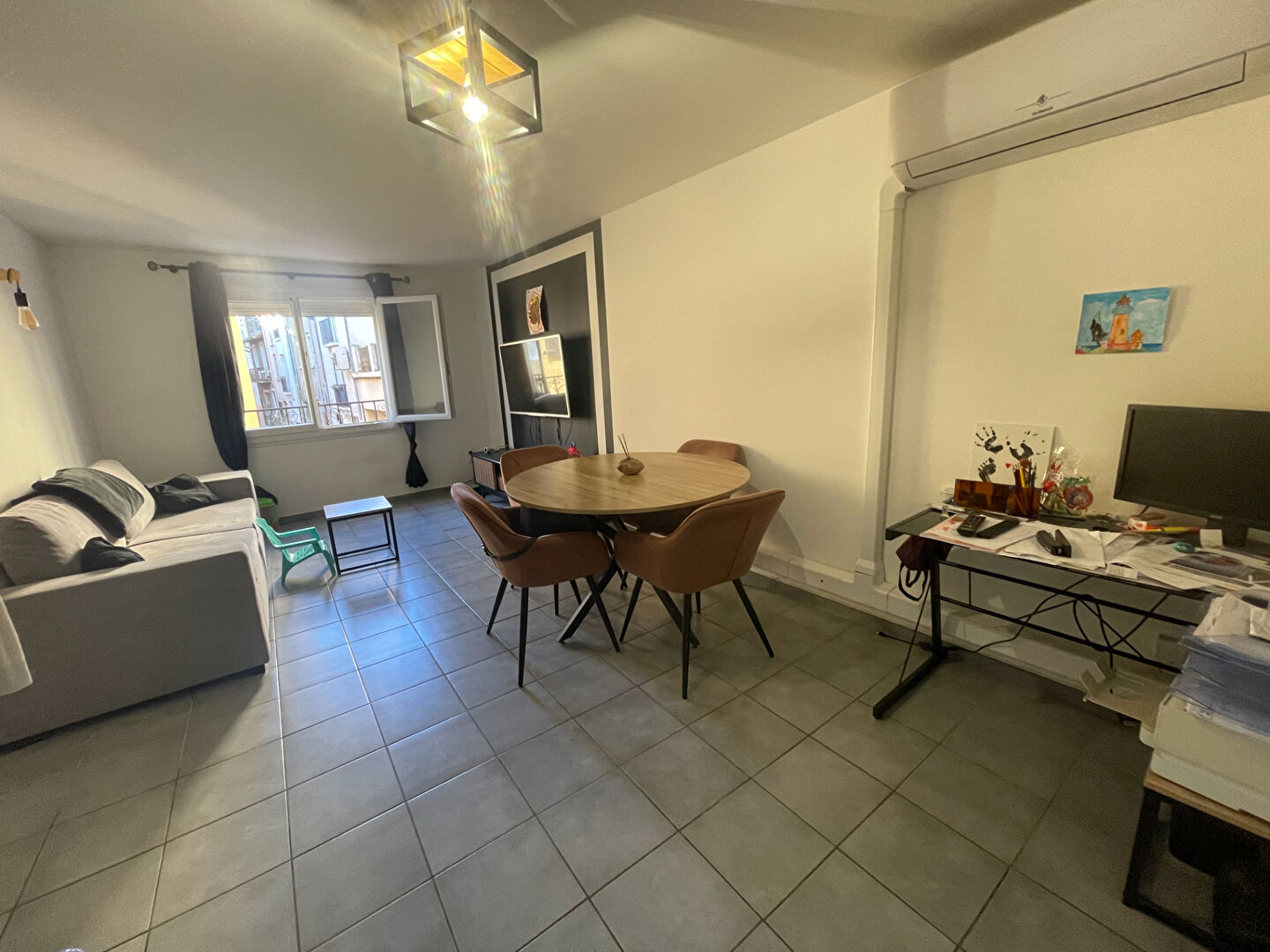 Situé dans le coeur du village de Pia , au 1er étage d'un petit immeuble , nous vous proposons cet appartement de type 3 de 55 m2 composé d'un salon séjour avec une cuisine ouverte aménagée , de 2 chambres et d'une salle de bain