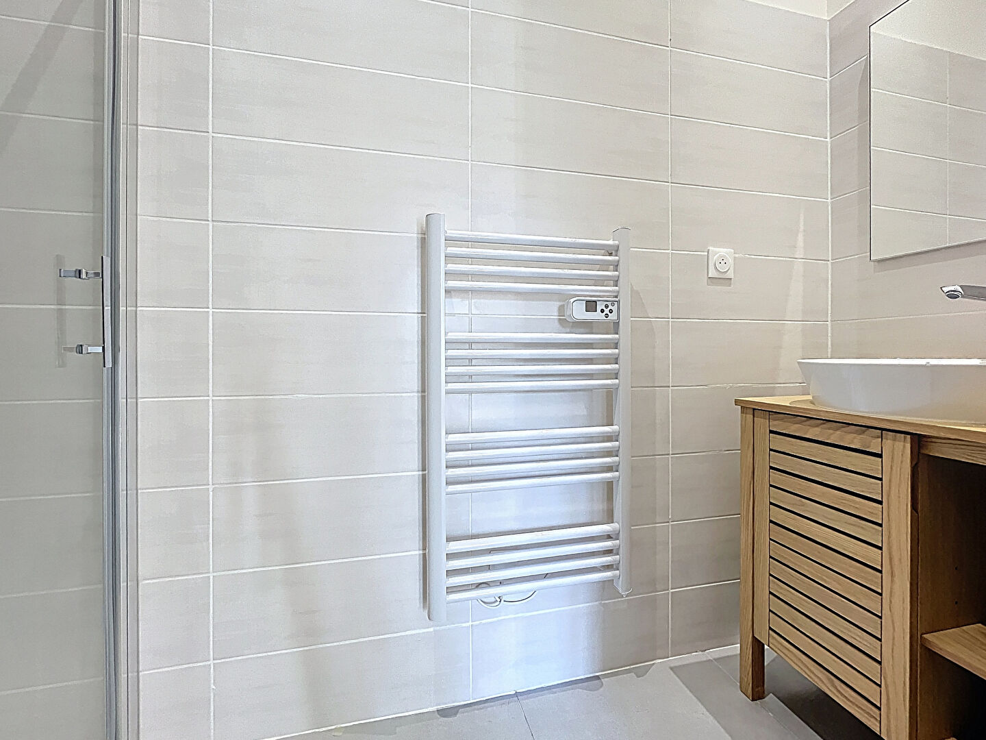 Ce bien, récemment créé et aux prestations neuves, bénéficie d'une exposition plein sud et d'une agréable terrasse. Il se compose d'une suite parentale, chambre avec pièce dressing, deux salles d'eau avec douche et deux WC, ainsi que d'une cuisine américaine ouverte sur un séjour spacieux et particulièrement lumineux.