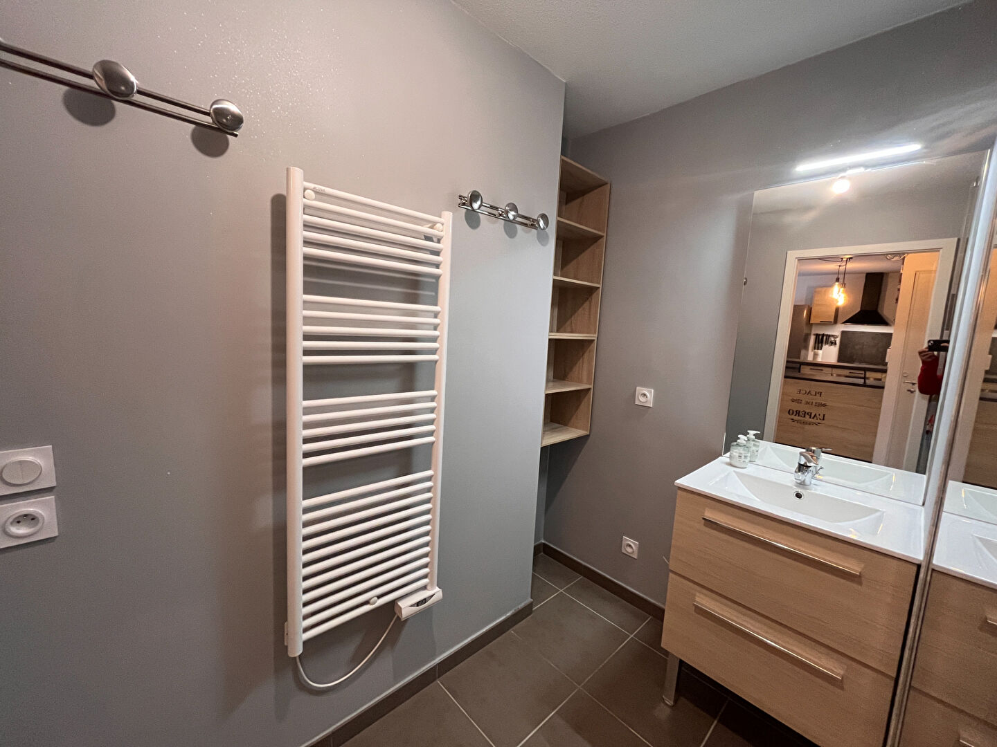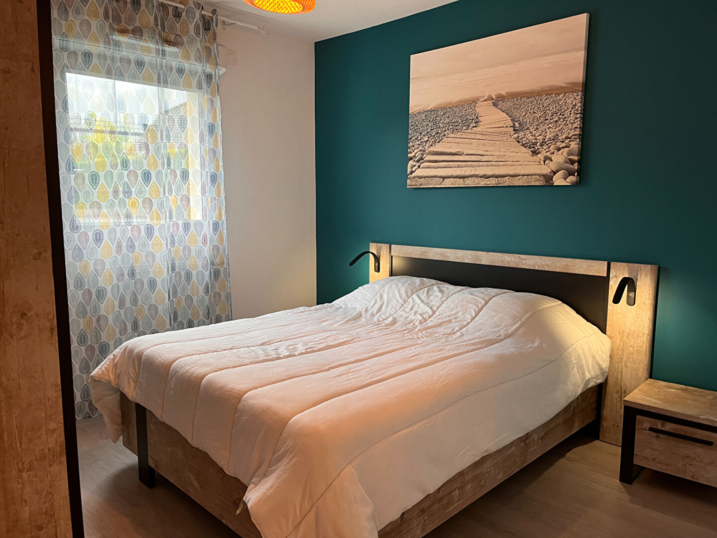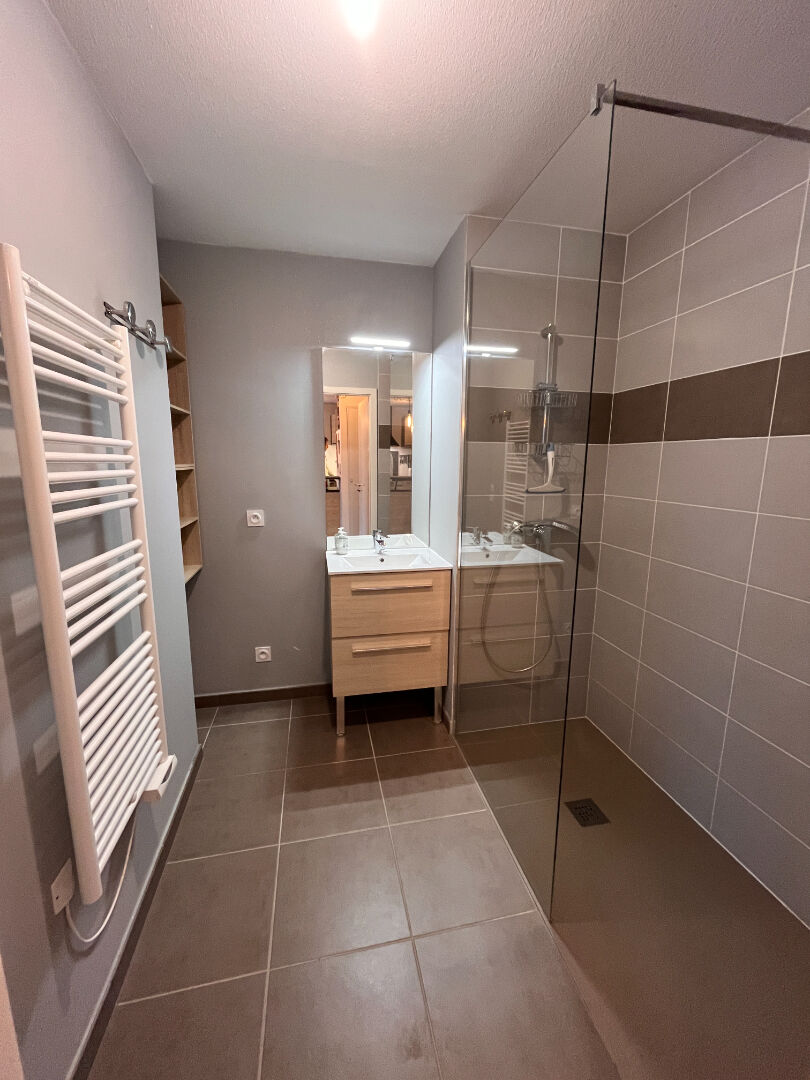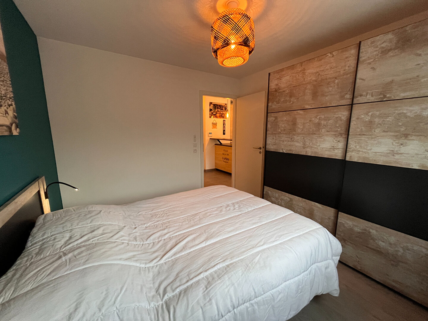 L'espace nuit propose une chambre confortable avec placard intégré. La salle d'eau est fonctionnelle et dispose de rangements.