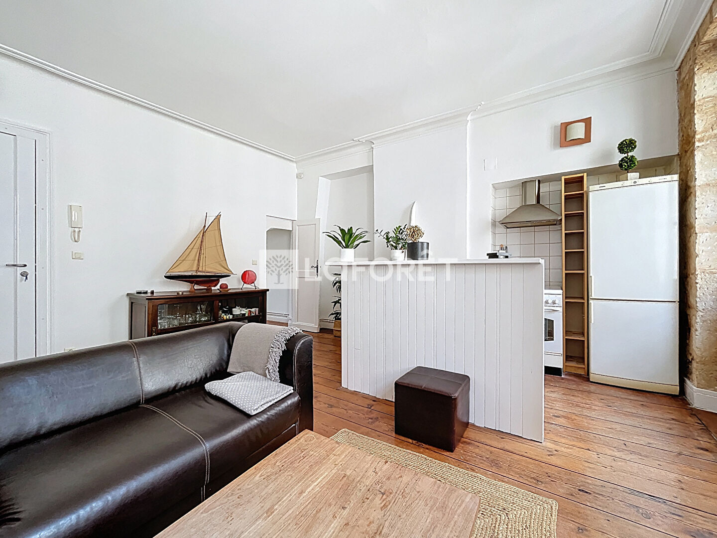 Dans un immeuble en pierre de Bordeaux parfaitement entretenu, cet appartement de charme marie authenticité et confort moderne : murs en pierre apparente, belle hauteur sous plafond, moulures d'origine et parquet ancien restauré avec soin.