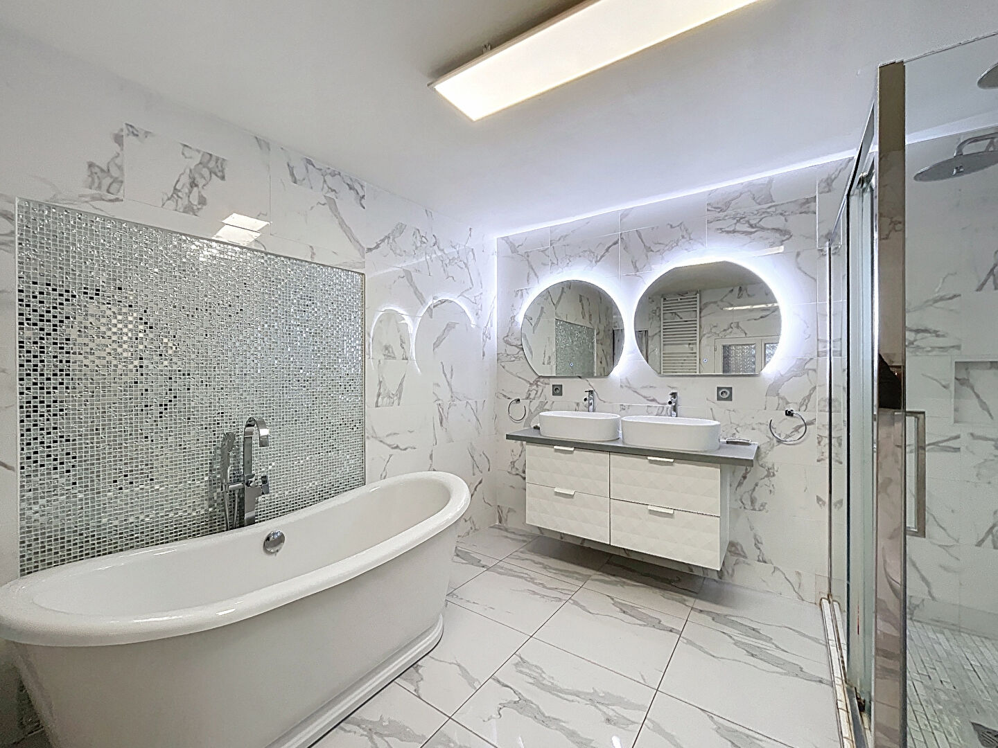 La rénovation complète allie esthétique et performance énergétique, avec un excellent DPE, garantissant confort thermique et économies d'énergie.