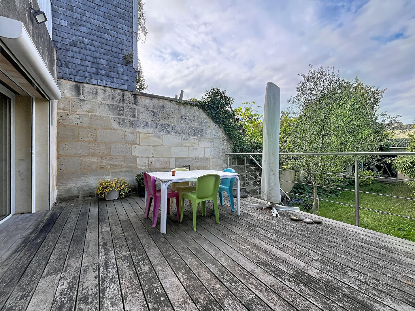 À l'extérieur, grand jardin plein sud sans vis-à-vis, deux terrasses (dont une via la suite parentale) pour profiter des beaux jours dans un environnement calme et privilégié.