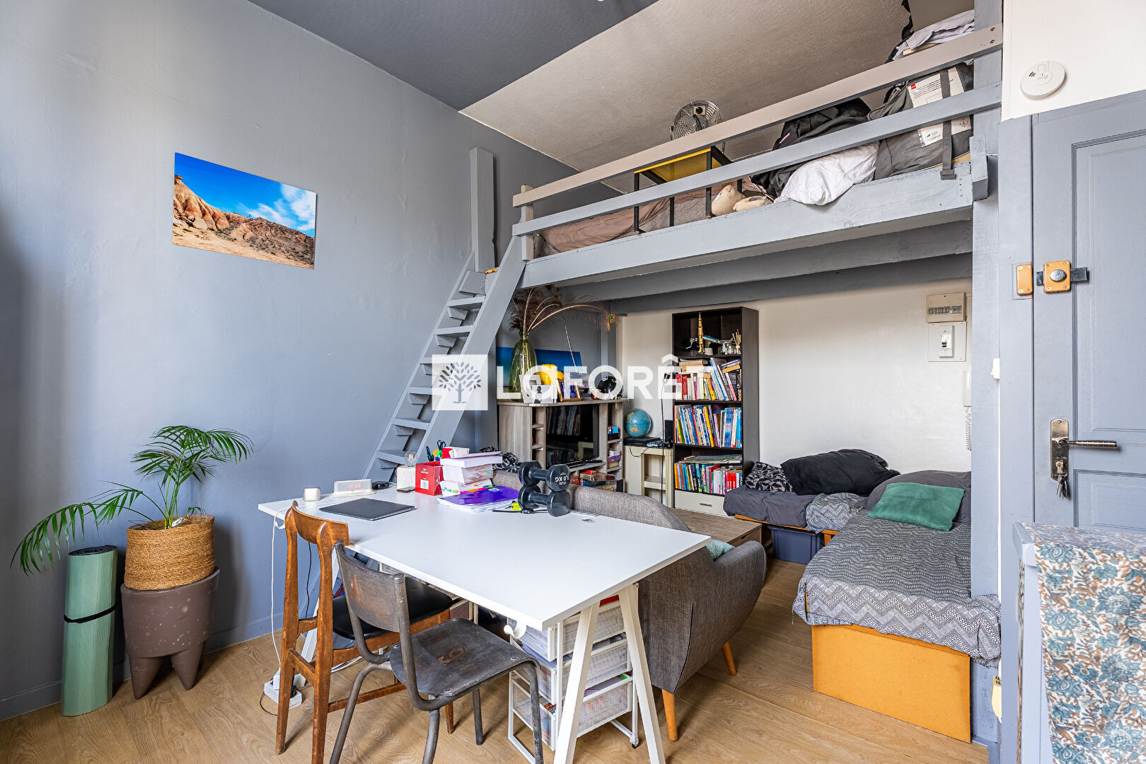 Ce bien offre une belle hauteur sous plafond avec coin nuit en mezzanine, un espace de vie optimisé avec kitchenette ouverte, ainsi qu'une salle d'eau. L'ensemble est vendu meublé et prêt à l'emploi.
