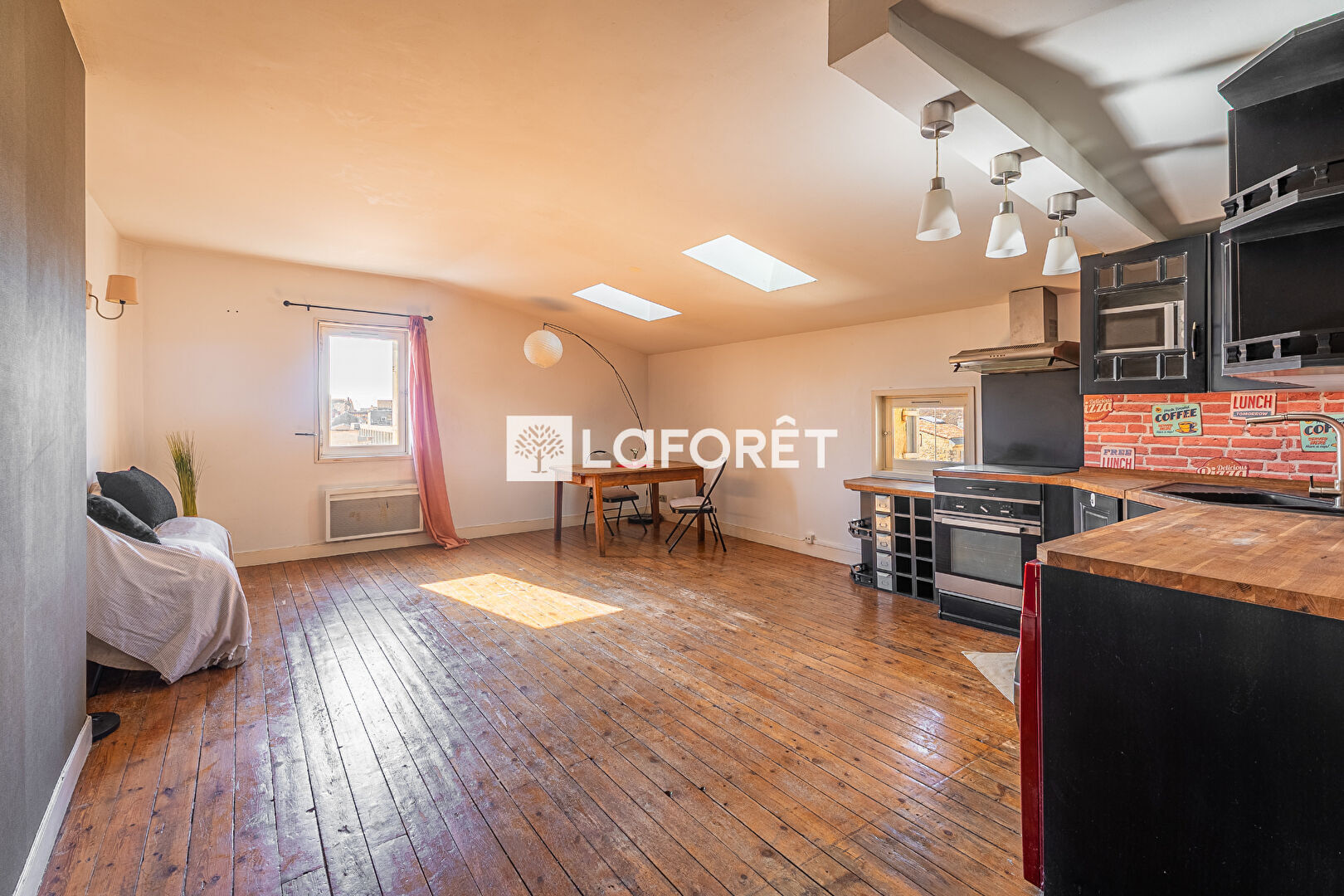 La distribution est fluide, les volumes agréables, et la vue dégagée sur les toits apporte une belle sensation d'espace et de tranquillité.