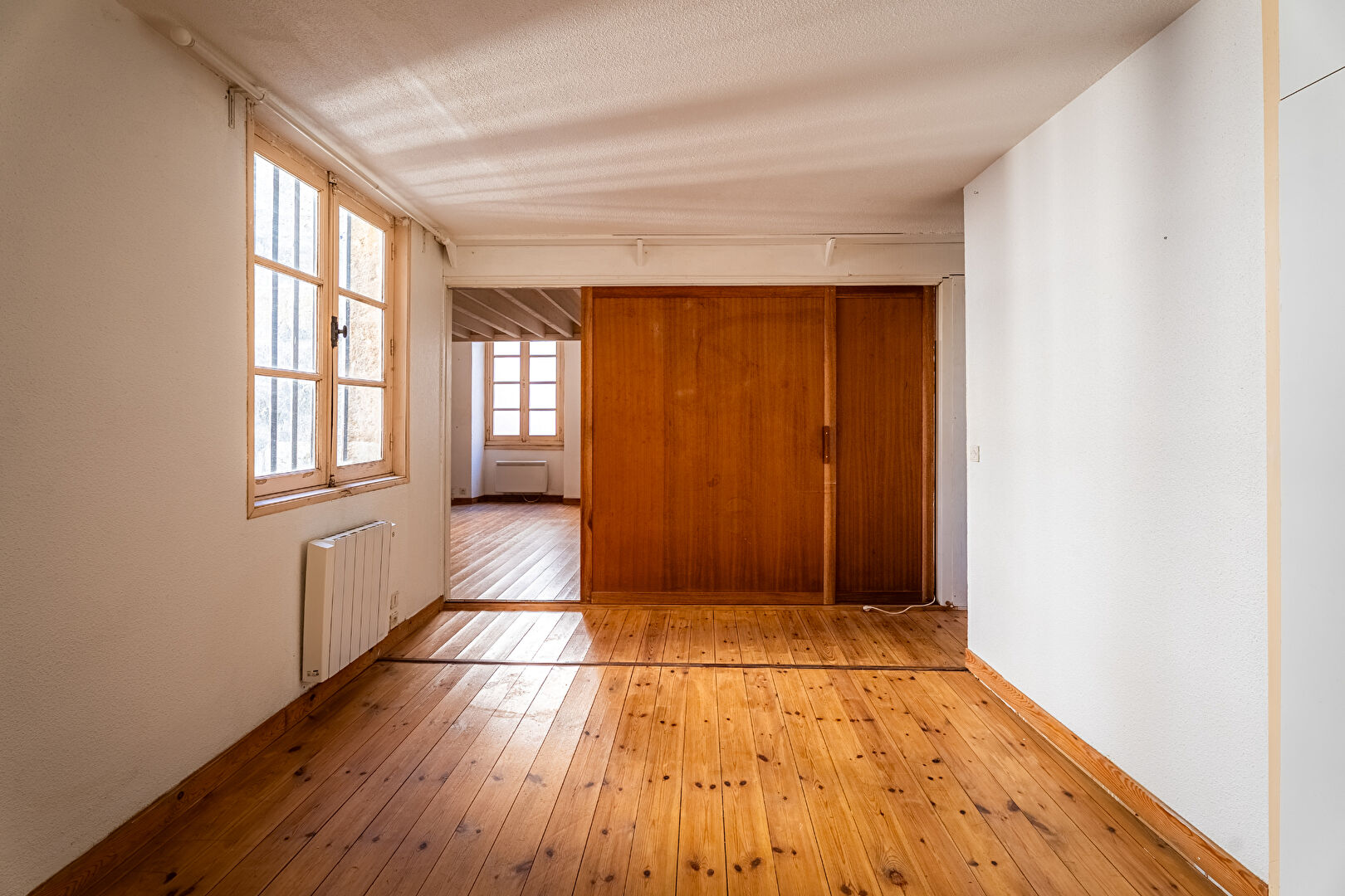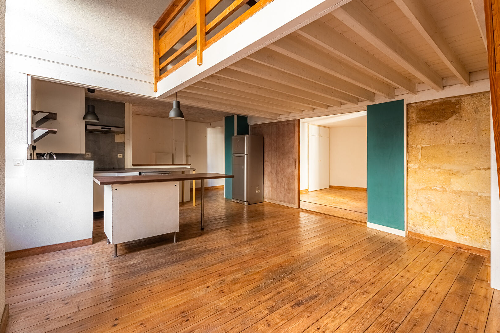 Le parquet et la structure existante laissent entrevoir un superbe potentiel de mise en valeur, idéal pour créer un lieu de vie à votre image dans un environnement recherché du centre bordelais.