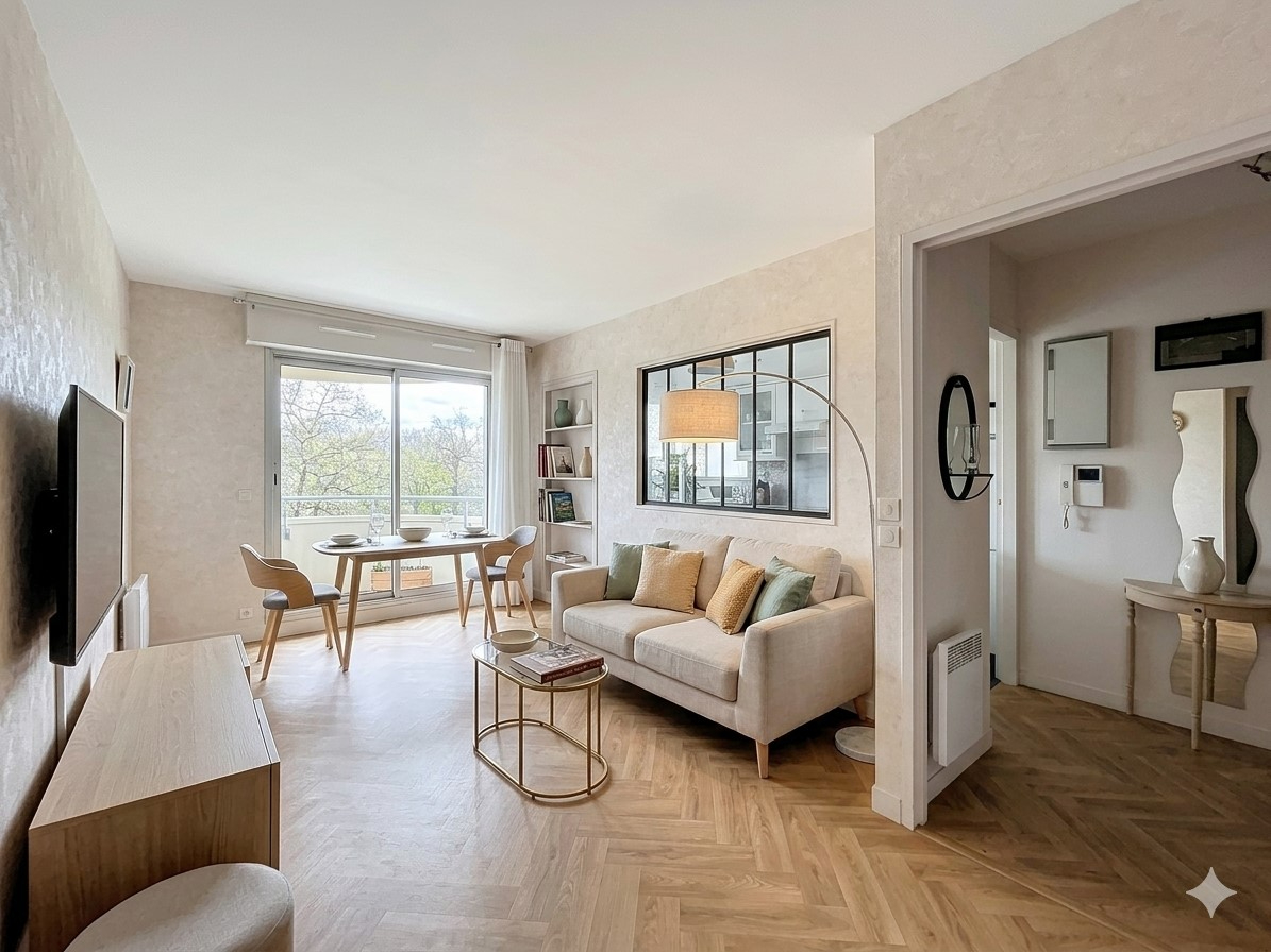Dès l'entrée, vous serez séduit par une pièce de vie lumineuse grâce à son exposition sud-ouest, prolongée par une cuisine entièrement aménagée et équipée, élégamment séparée par une verrière au style contemporain.