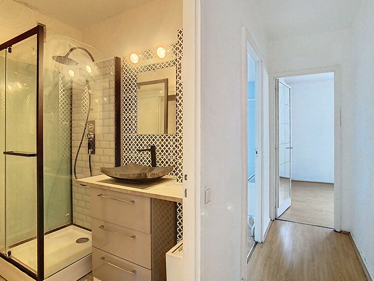 Appartement de quatre pièces principales comprenant, entrée avec placard, séjour lumineux exposé Ouest et donnant sur un grand balcon, 3 chambres dont une avec balcon privatif, salle d'eau, cuisine.