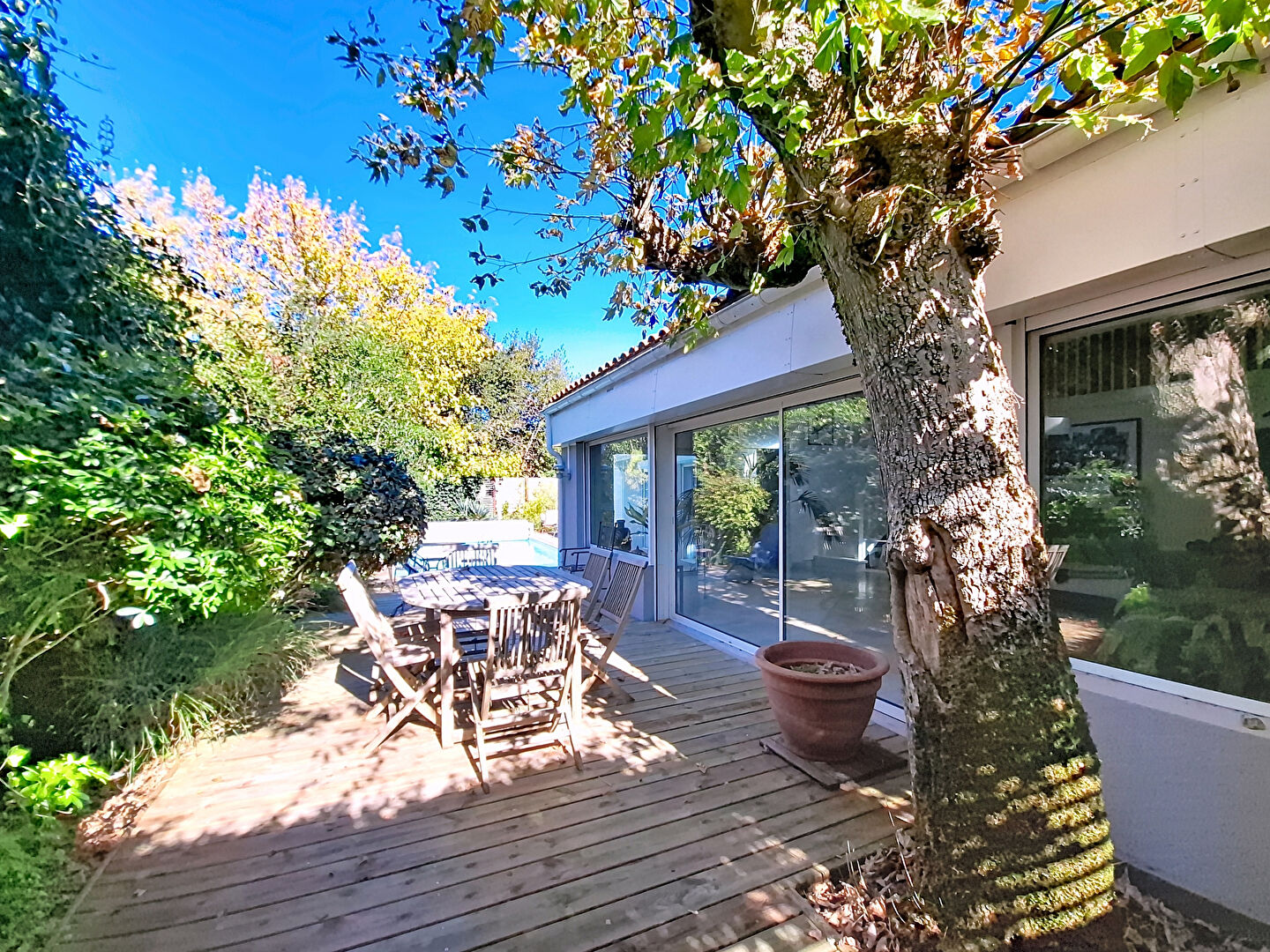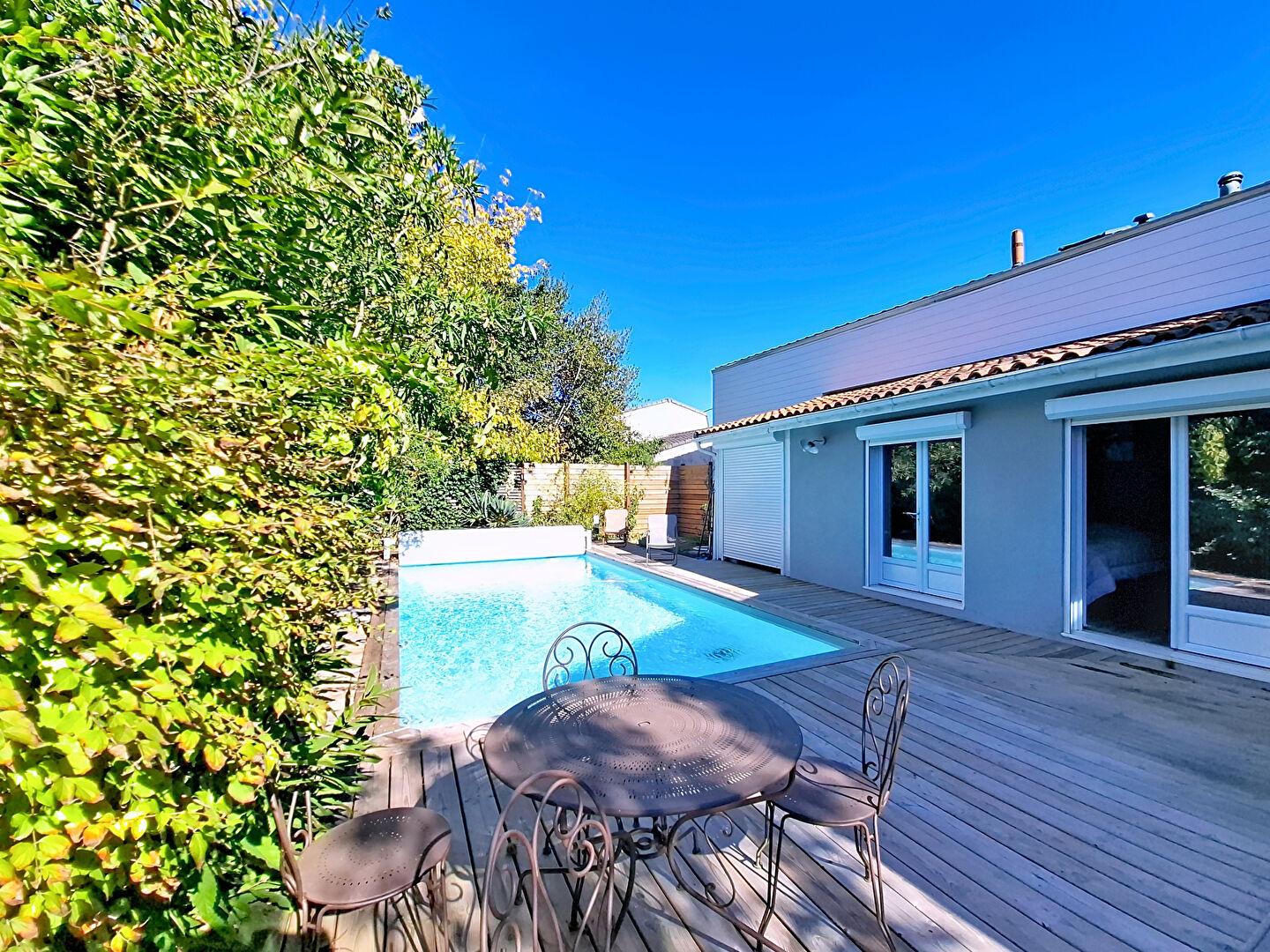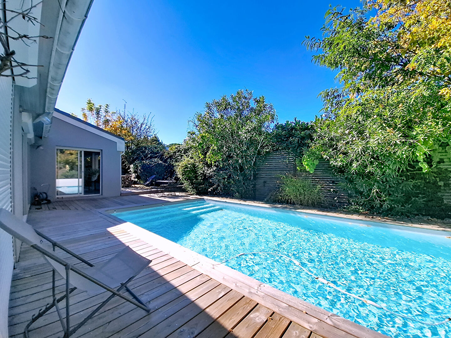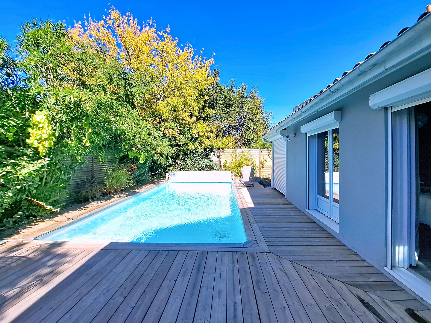 À l'extérieur, la maison s'ouvre sur une agréable terrasse exposée Sud-Ouest, prolongée par une grande piscine propice à la détente et aux moments partagés en famille ou entre amis.