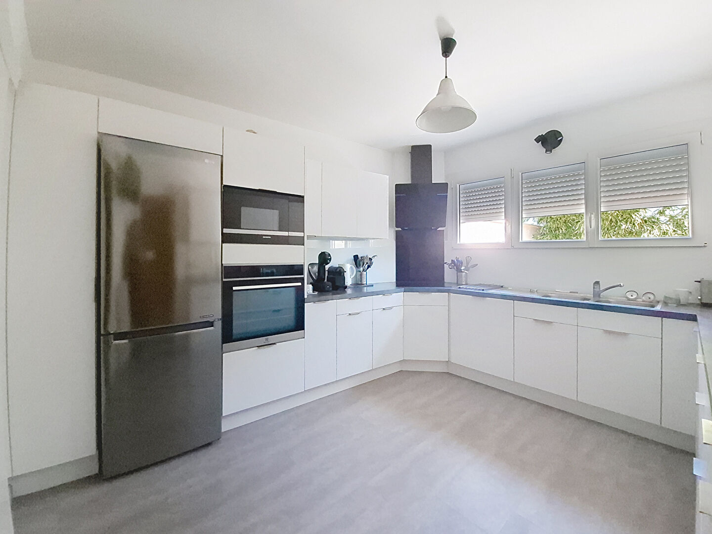 La cuisine aménagée, à la fois pratique et moderne, s'intègre harmonieusement à l'ensemble et bénéficie d'un cellier attenant.