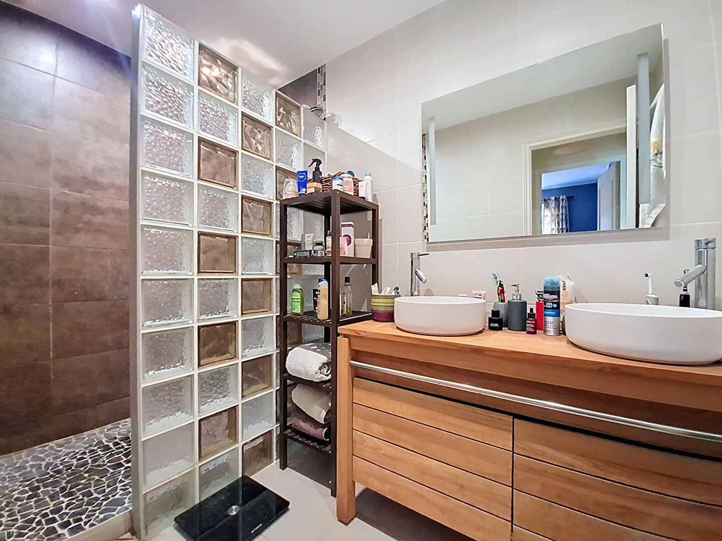 Le rez-de-chaussée accueille deux chambres, chacune disposant de sa salle d'eau privative, offrant ainsi indépendance et confort aux occupants comme aux invités.