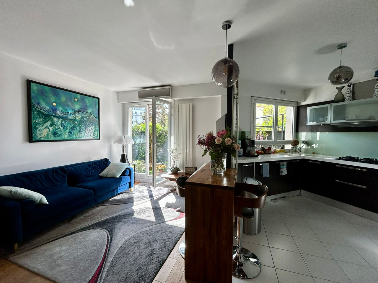 L'appartement dispose de deux petits jardins privatifs : l'un côté salon, parfait pour les repas en extérieur ou les moments de détente, et l'autre côté chambre parentale, pour plus d'intimité et de tranquillité.