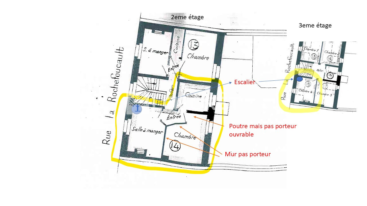 Petite copropriété ancienne, traversant, exposé Sud, un appartement duplex au 2ème étage sans ascenseur , comprenant : au 2ème étage, une entrée, une salle a manger (11m²) attenante à la cuisine de 6m² (séparé), un séjour (12m²), et au 3ème une chambre (10m²). Une cave complète ce bien.