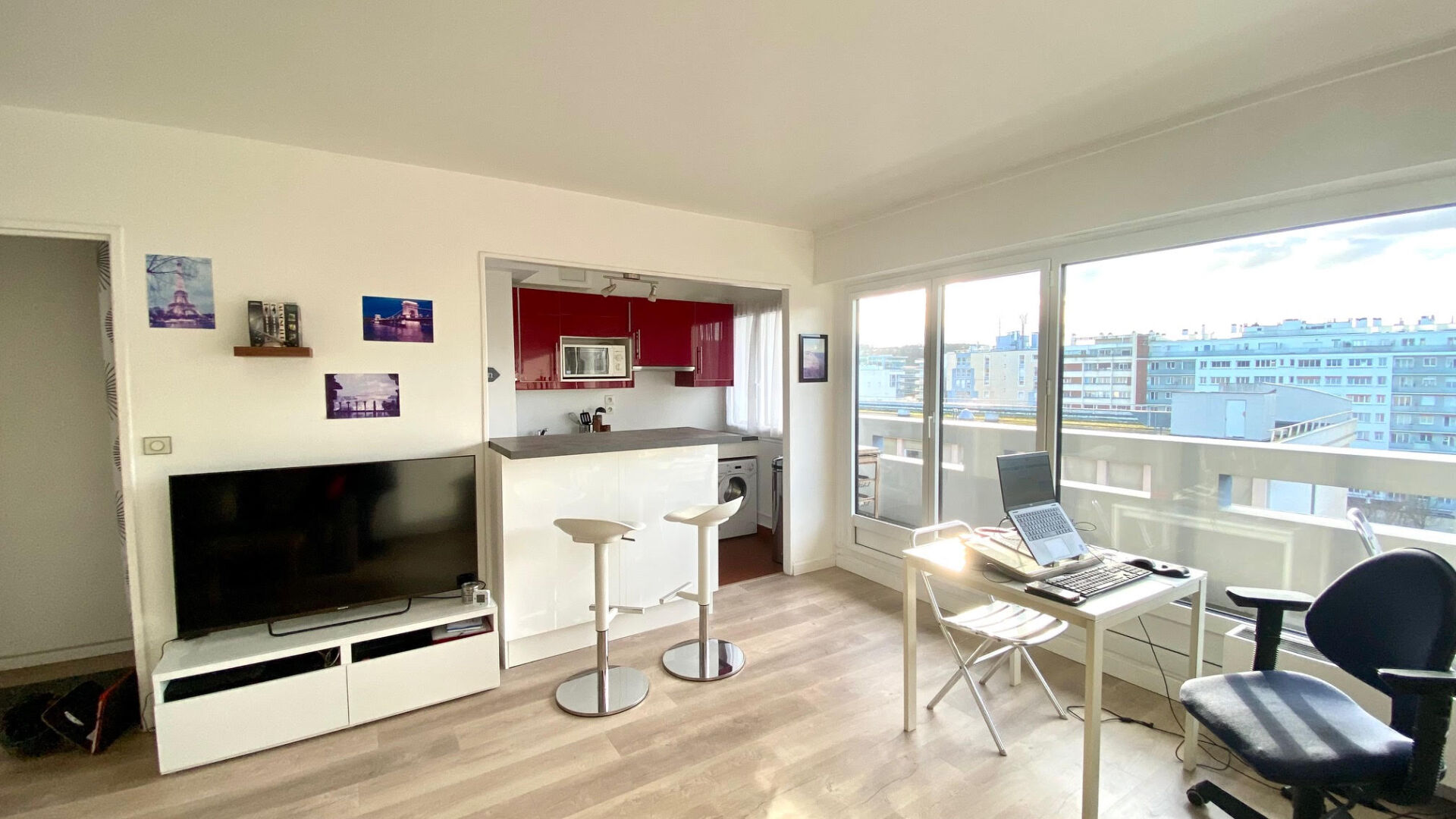 Belle copropriété récent avec gardien, appartement 2 pièces en parfait état, au 8ème étage, avec vue dégagée, comprenant : une entrée avec placard, un séjour exposé Ouest amenant sur une terrasse, une cuisine ouverte équipée et aménagée, une chambre donnant sur la terrasse, une salle de bain avec WC.