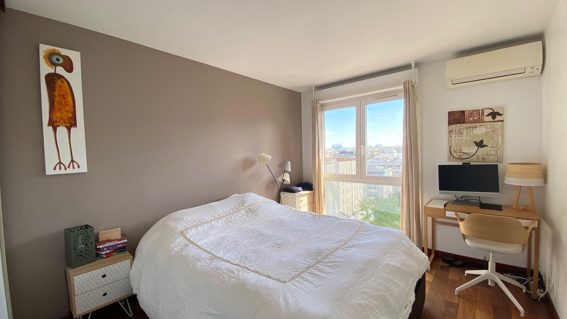 Copropriété récente (1994) , appartement traversant de 4 pièces de 95m², au 8ème et dernier étage , avec climatisation réversible, comprenant : une entrée avec placard, une séjour amenant sur la terrasse de 8m², une cuisine équipée et aménagée semi ouverte avec verrière, 3 chambres ( 13m²,13m²,11m²), une salle de bains, une salle de douches, 2 WC séparés.