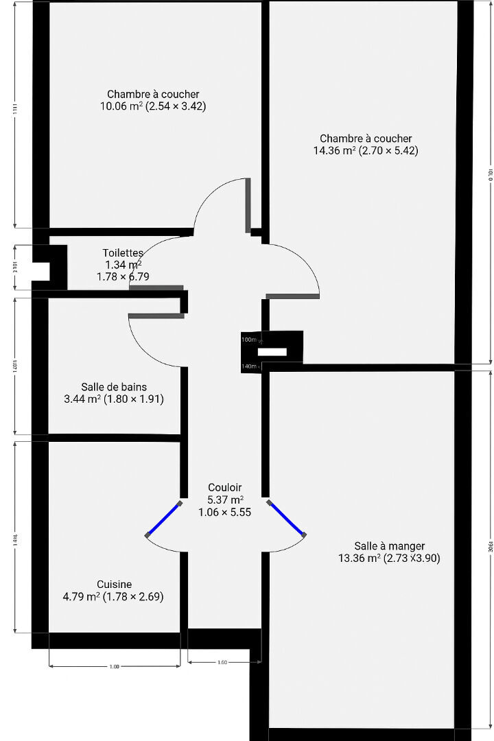 53 m² • 3 pièces • 2 chambres