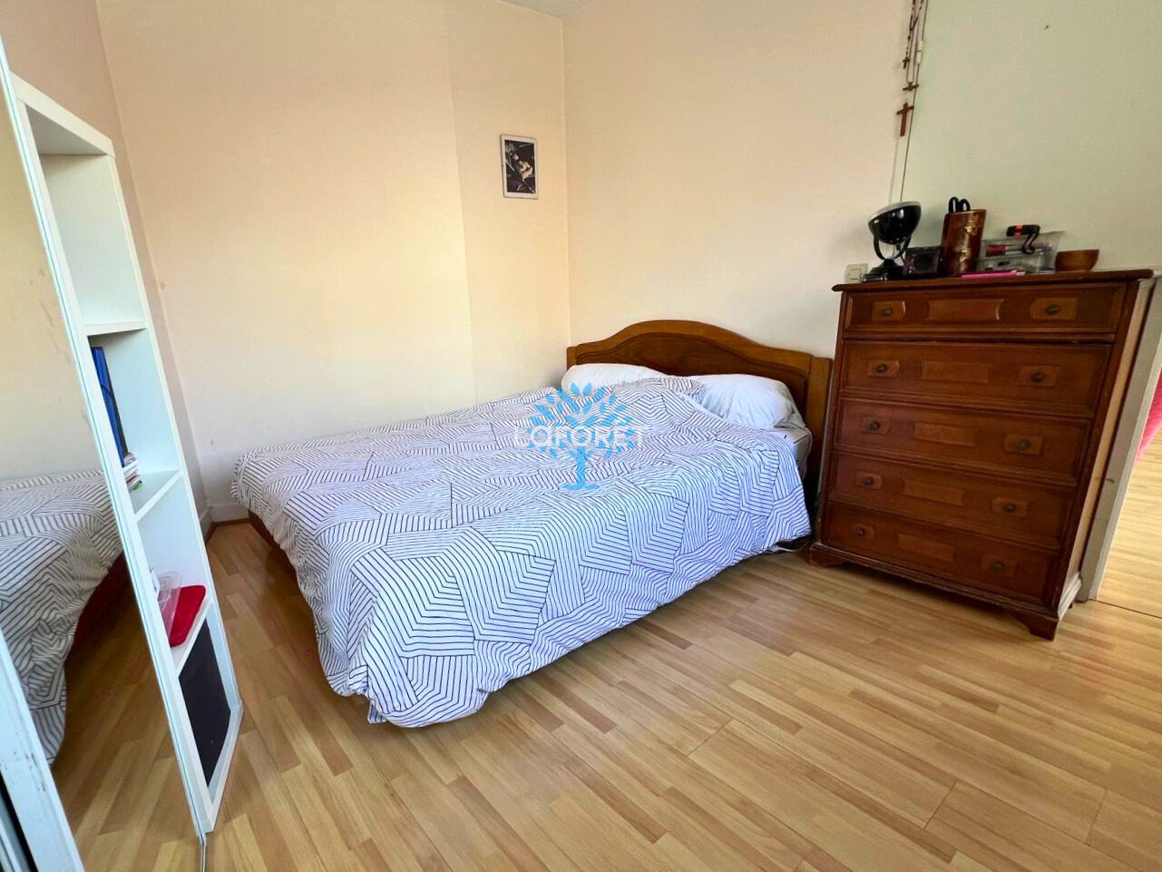 Une salle de bains avec WC, une salle d'eau, un WC séparé ainsi que de nombreux rangements viennent compléter ce bien fonctionnel et bien pensé. Une cave en sous-sol est incluse, et la résidence propose également un local à vélos.