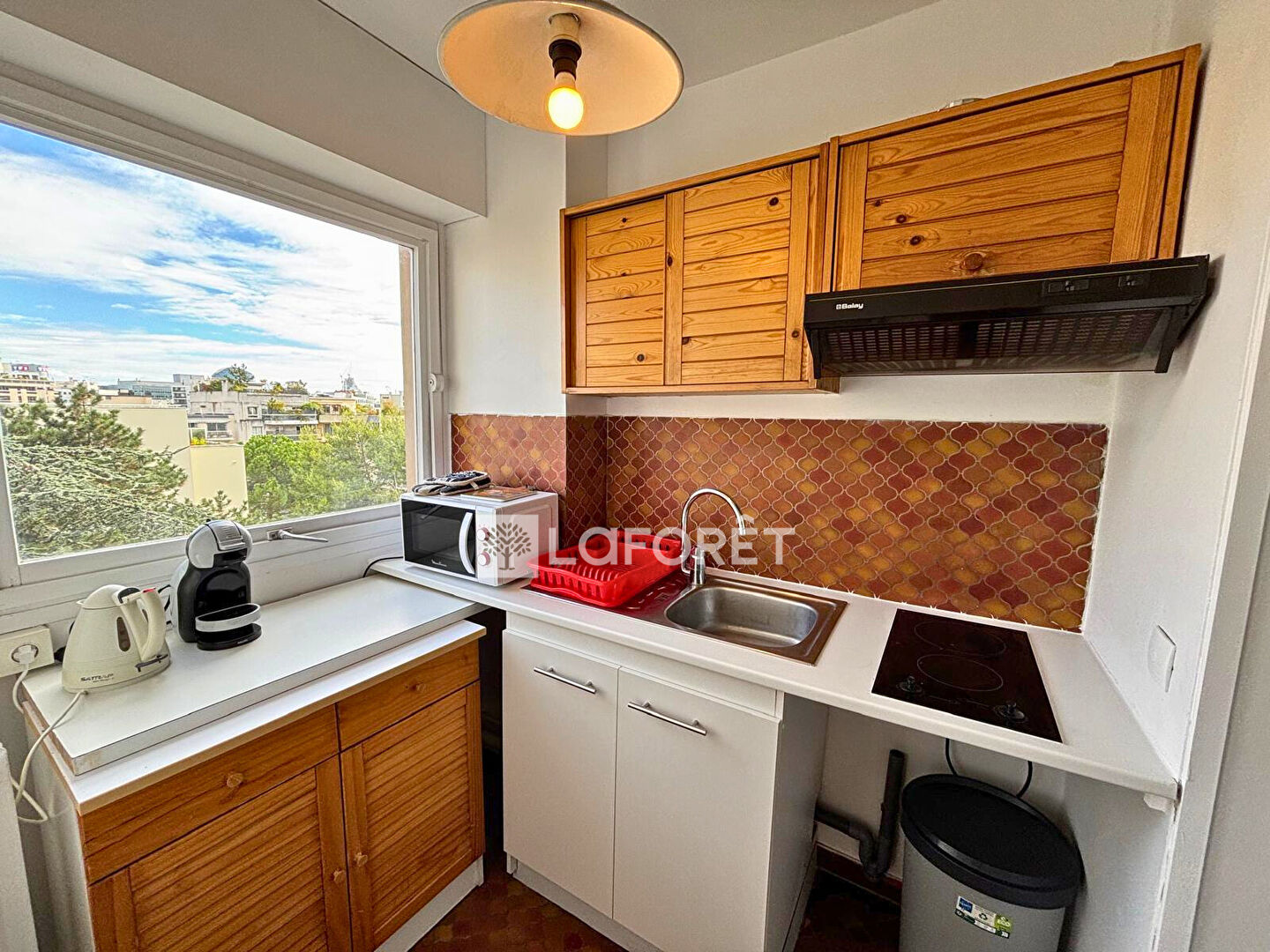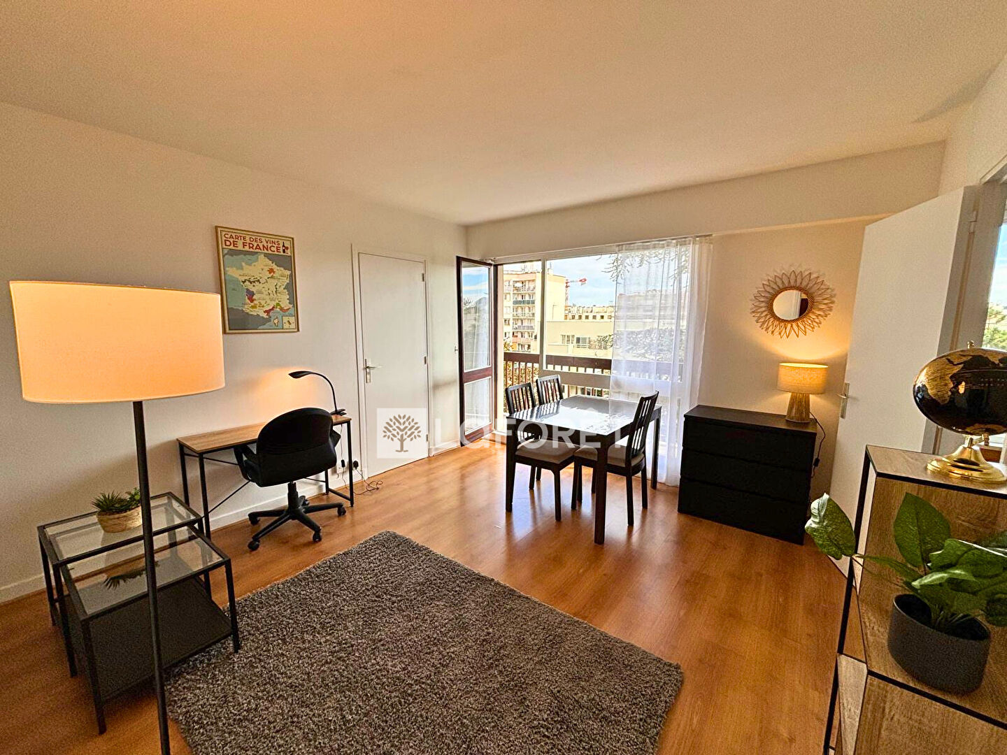 Dans une copropriété sécurisée et bien entretenue avec gardien, au 6ème étage avec ascenseur, un studio meublé de 29m² exposé est comprenant une entrée avec placard, une pièce principale donnant sur un balcon sans vis-à-vis, une cuisine indépendante, une salle de bain, WC séparés. Chauffage et eau chaude collectifs. Appartement calme et lumineux, proche transports et commodités.