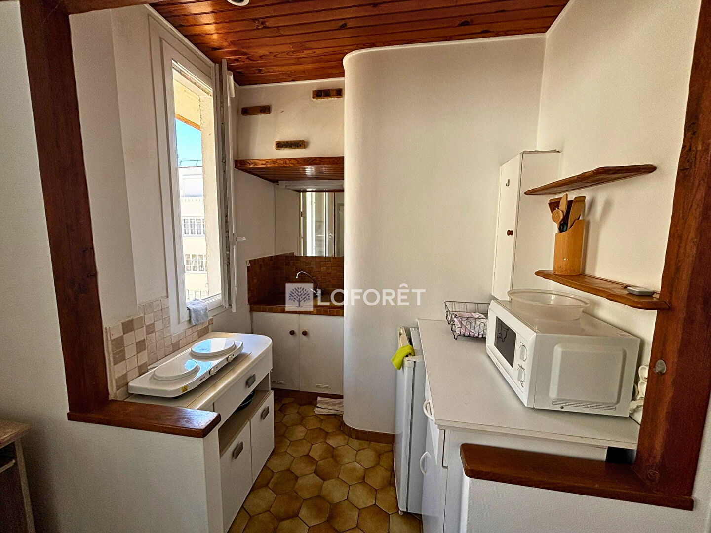 Il se compose d'une entrée, d'une salle d'eau avec WC, d'un coin cuisine, ainsi que d'une pièce principale avec placard.