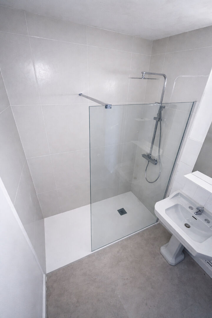 Une entrée, une cuisine avec cellier, un grand séjour, une chambre avec coin dressing et une salle d'eau avec douche et WC.