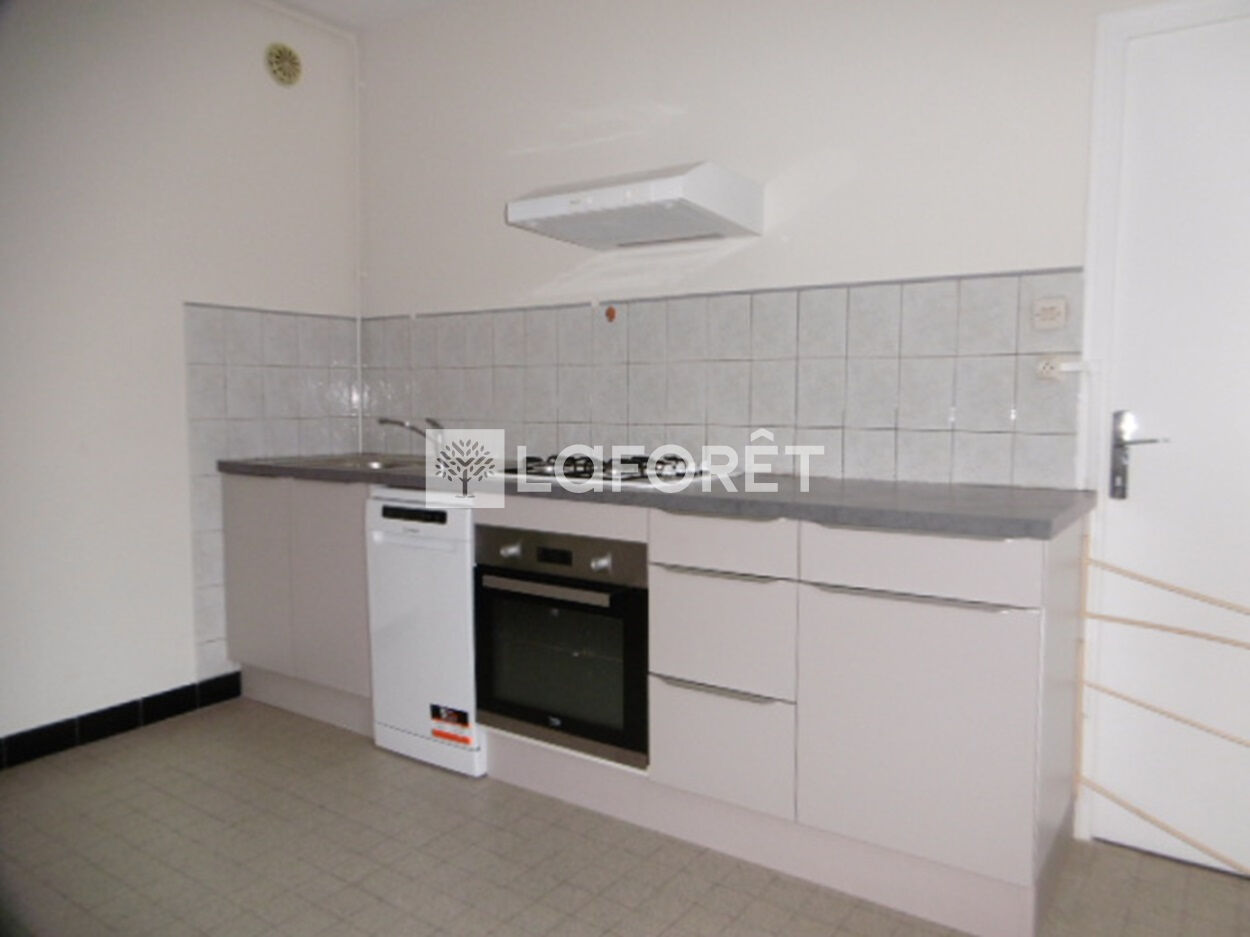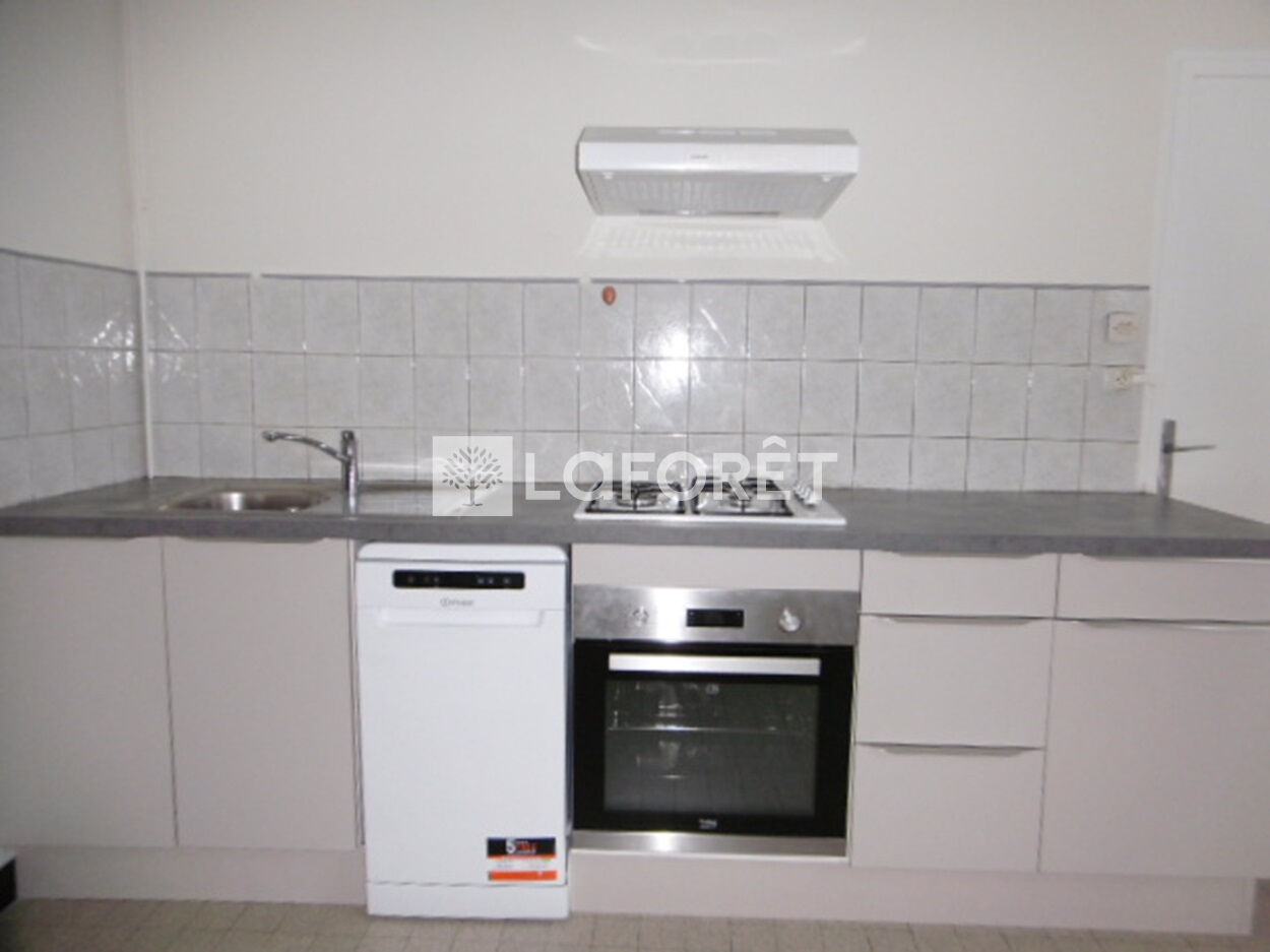 Rue Dr Nodet, Appt T3 équipé au RDC Sud se composant d'une entrée, d'une cuisine équipée d'éléments, plan de travail et d'électroménager (plaque de cuisson 3 feux gaz/1 plaque électrique, four, lave-vaisselle 6 couverts), d'un séchoir.