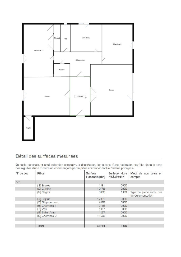 68 m² • 3 pièces • 2 chambres