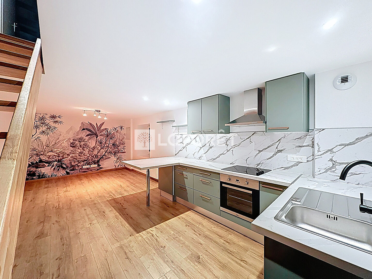 - Rez-de-chaussée : belle pièce de vie avec salon et cuisine ouverte entièrement équipée