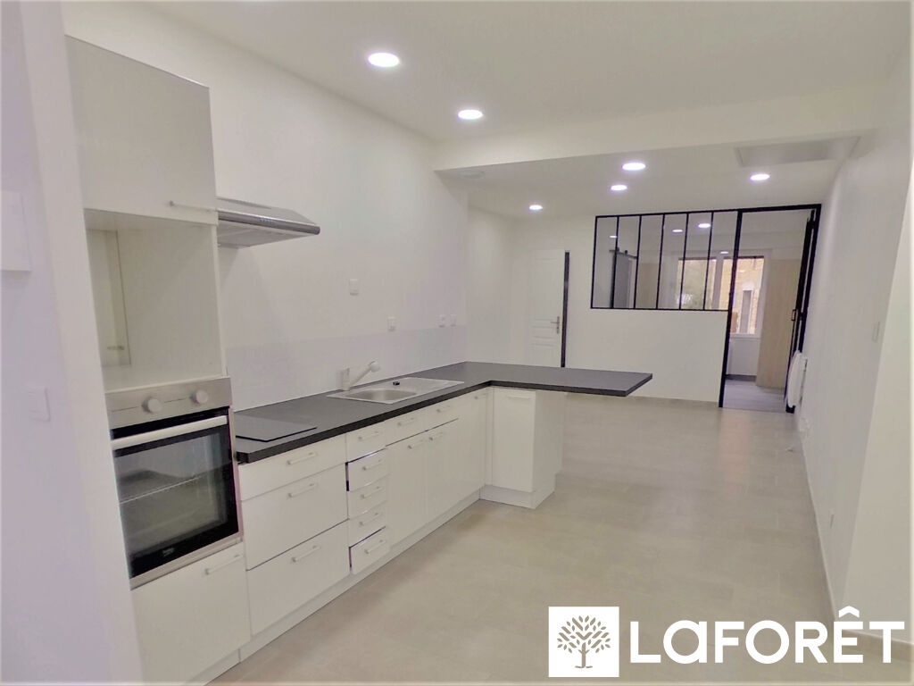 Au RDC d'une petite résidence, située proche centre de Mézériat et de la gare à pieds, F1 40 m² aménagé en F2 car espace nuit, entièrement rénové, séjour ouvert sur cuisine aménagée et équipée (plaques et hotte),
