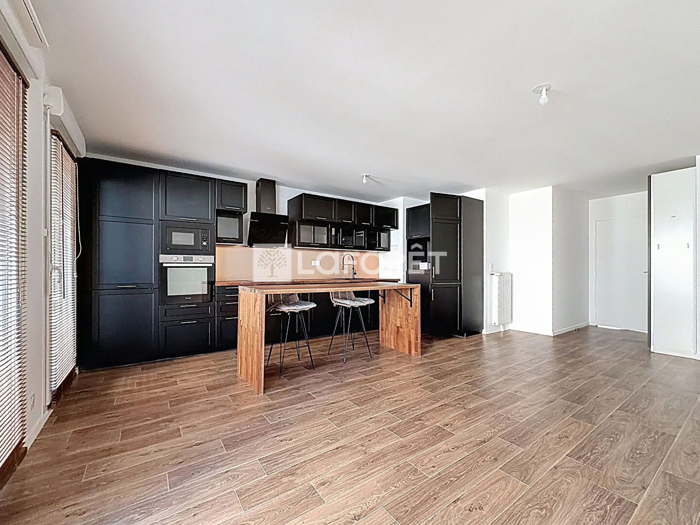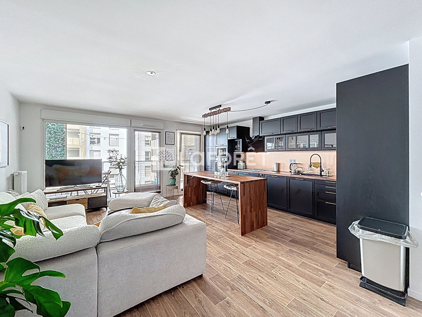 Une entrée, un séjour lumineux avec cuisine ouverte de 35m², deux chambres, une salle de bains, w.c et un grand balcon !